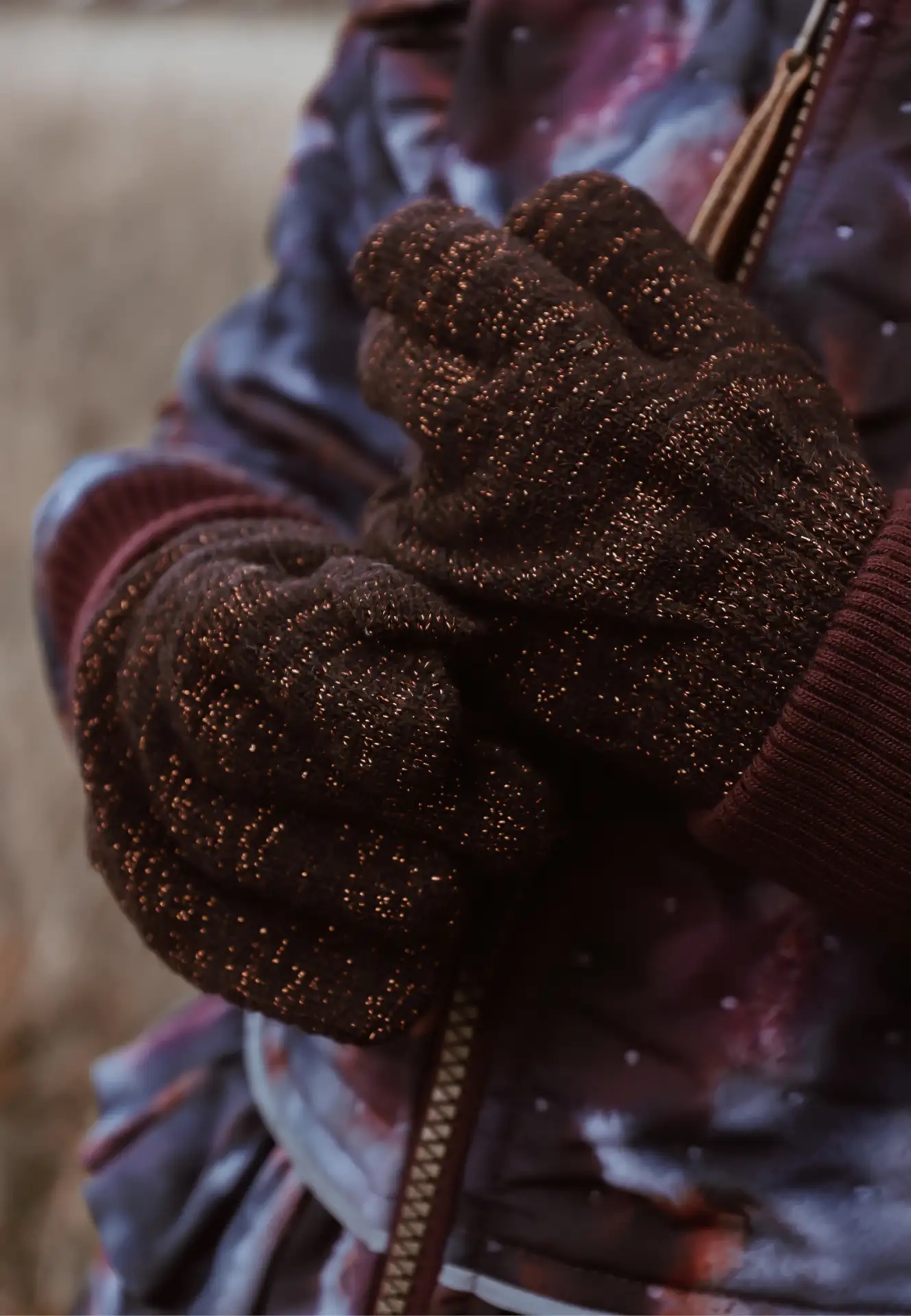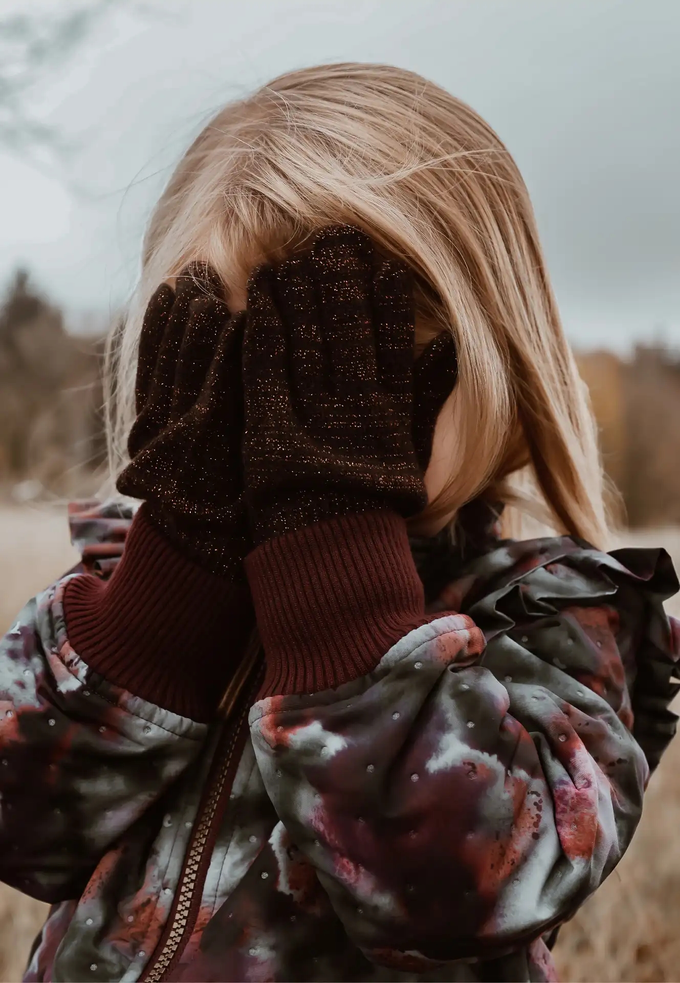 Mikk-lines strikkede Magic handsker passer til børn fra ca. 1-16 år. Handskerne er særligt designet til piger, da de indeholder lurex-fibre, som giver et smukt glitrende look. De er lette, bløde og behagelige at have på, når barnet leger ude i køligt og tørt efterårs- og vintervejr og er perfekte til aktiviteter, der kræver finmotorik.
