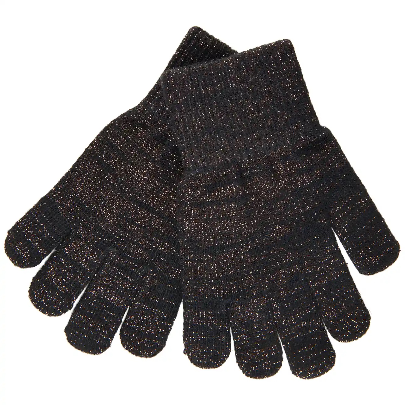 Et par bløde, strikkede Mikk-line handsker i sort med glitter.