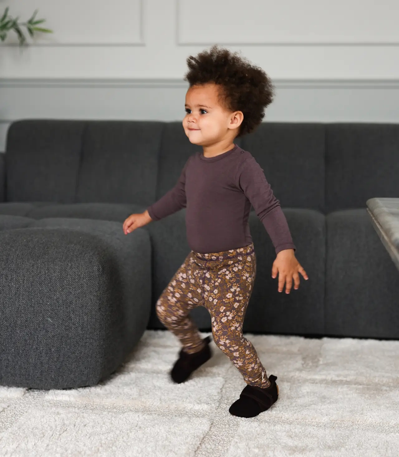 Mikk-Line hjemmeskoene lukkes med en velcrorem over vristen, så de nemt og hurtigt kan tilpasses til fødderne. Bagpå er der en kort strop. De er lavet af 100% uld på indersiden og har en ydersål i ruskind og gummi, som sikrer et godt fodfæste indendørs.