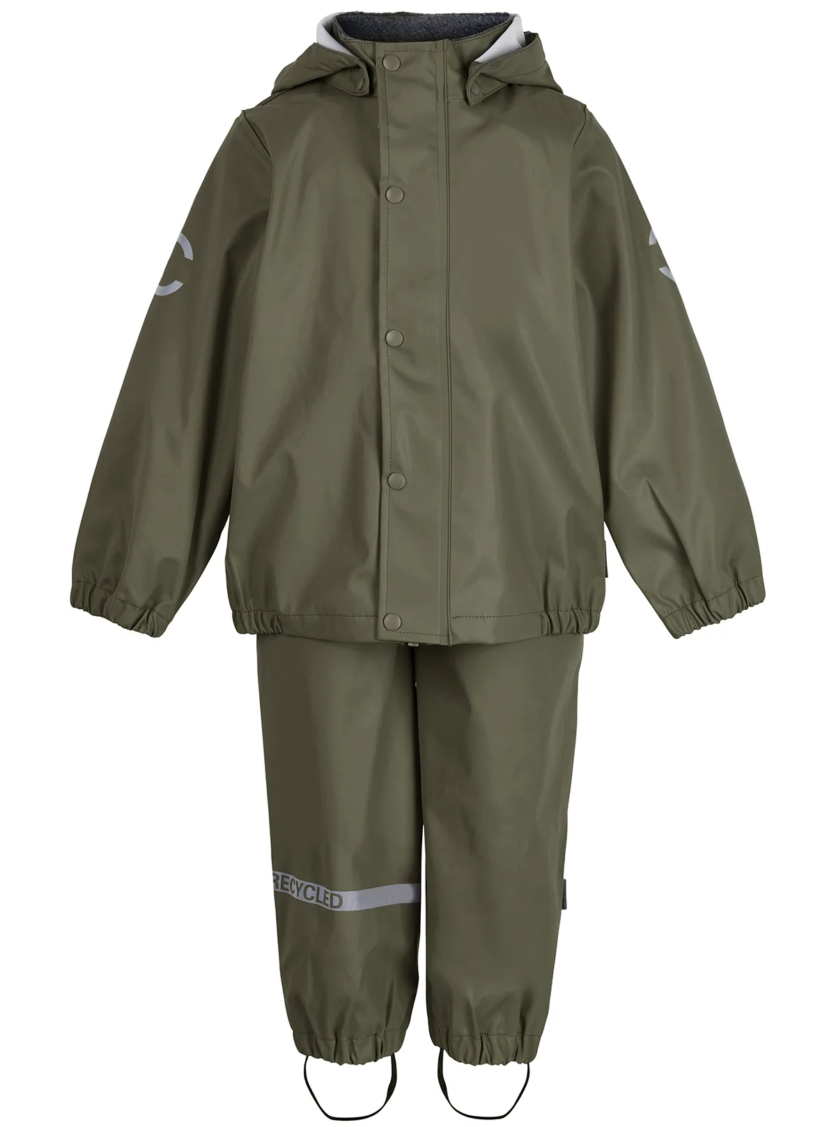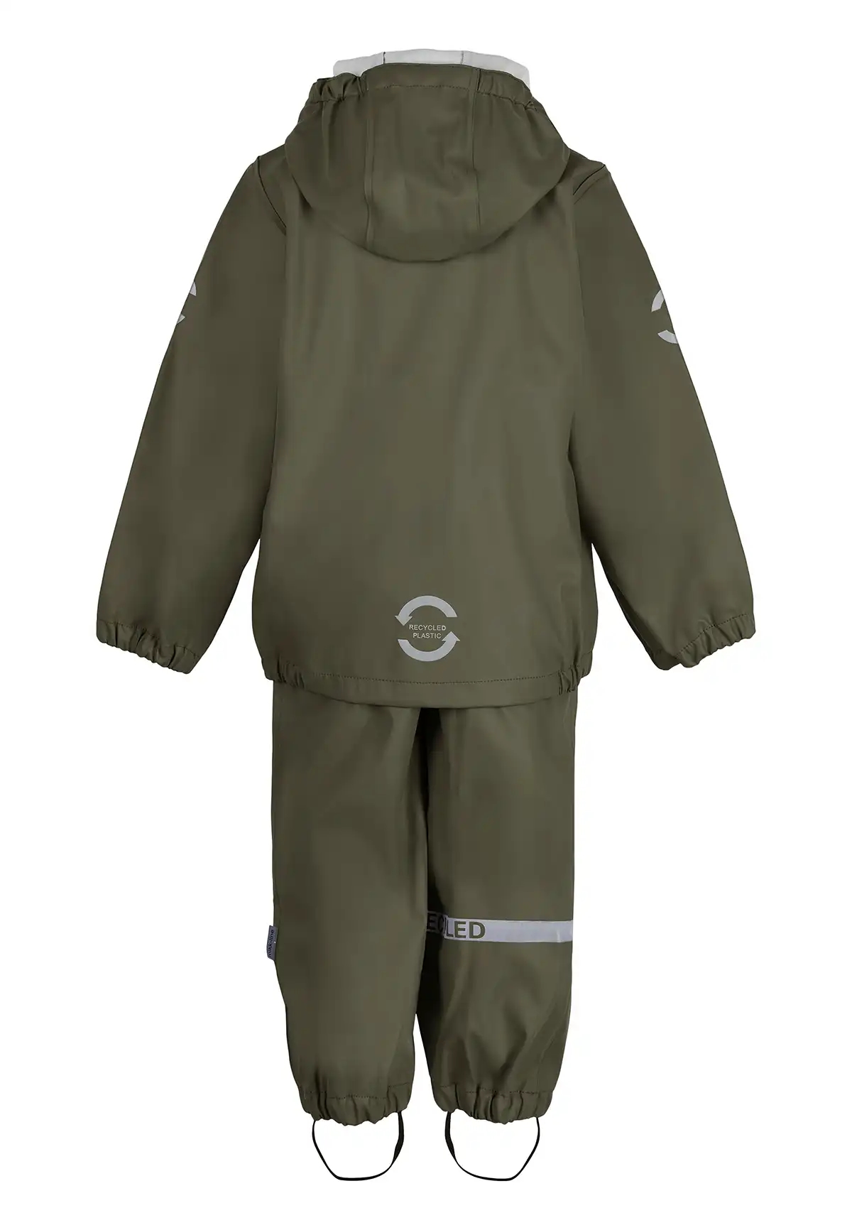 Mikk-Line Regntøj Dusty Olive m. seler - genanvendt PU