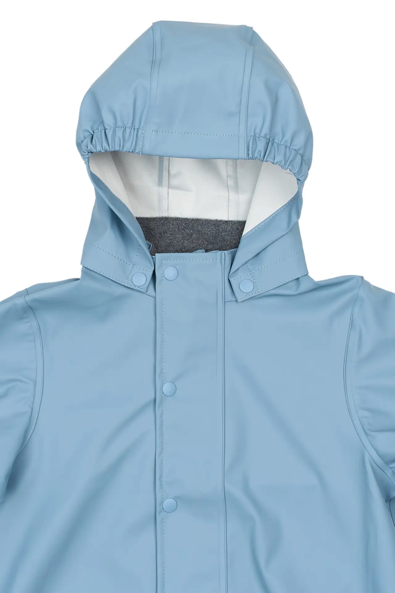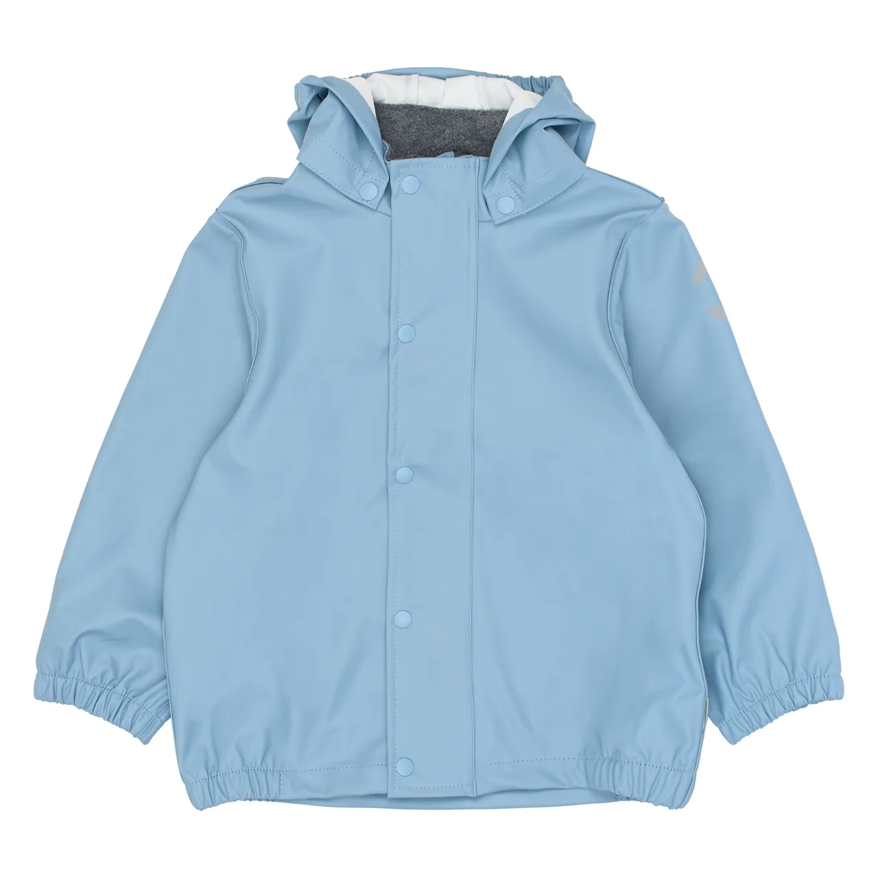 Regnjakken er med aftagelig hætte, som vil løsrive sig, hvis den skulle hænge fast i noget.