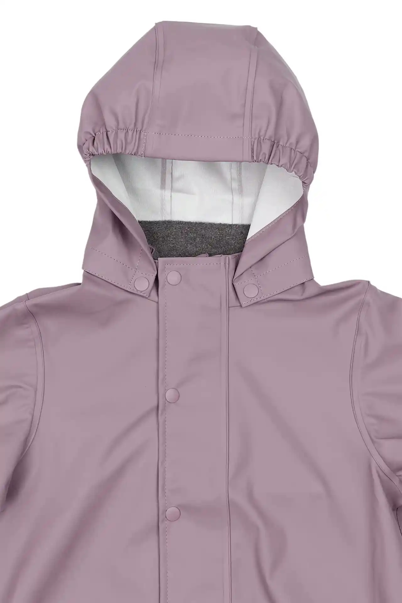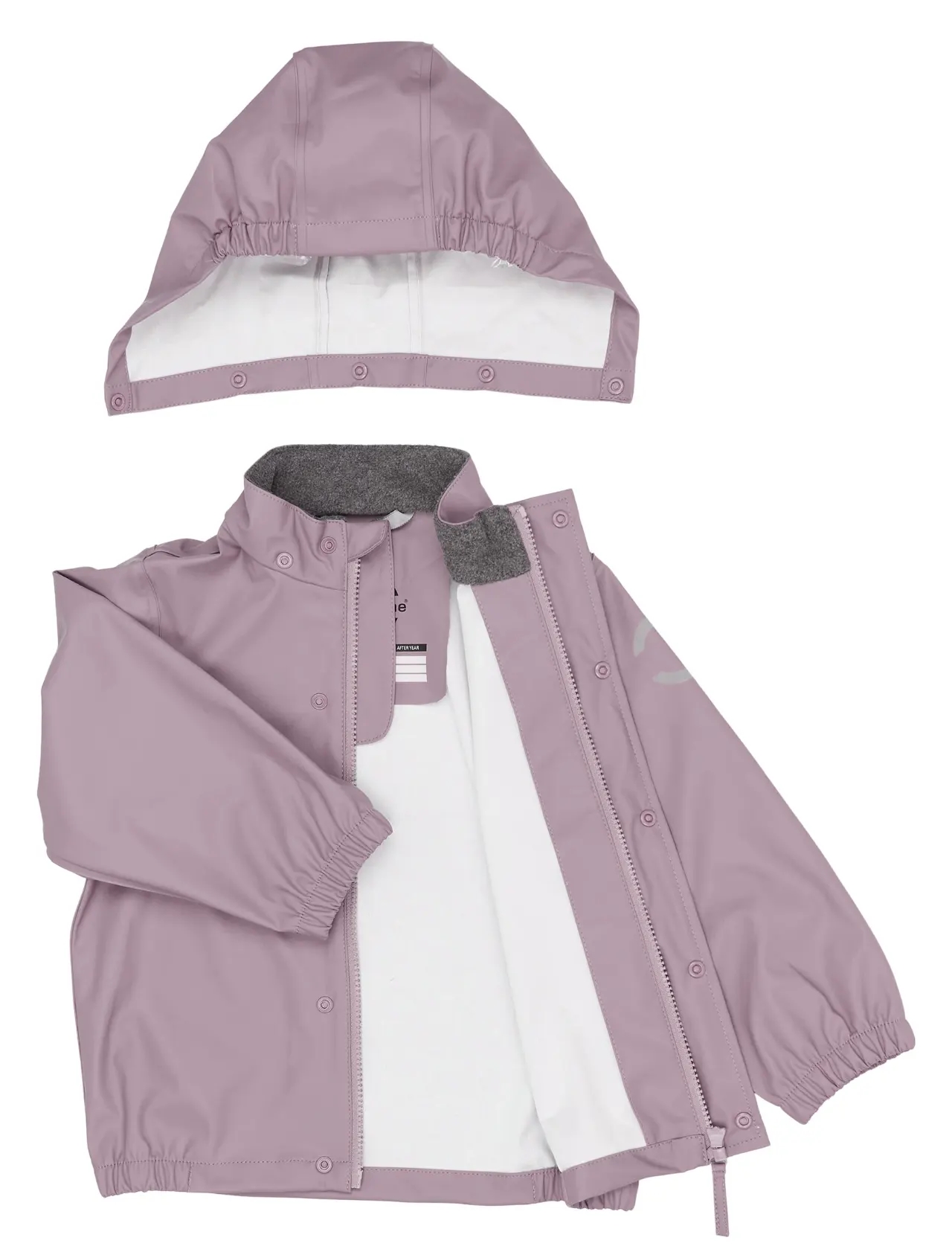 Regnjakken er med aftagelig hætte, som vil løsrive sig, hvis den skulle hænge fast i noget.