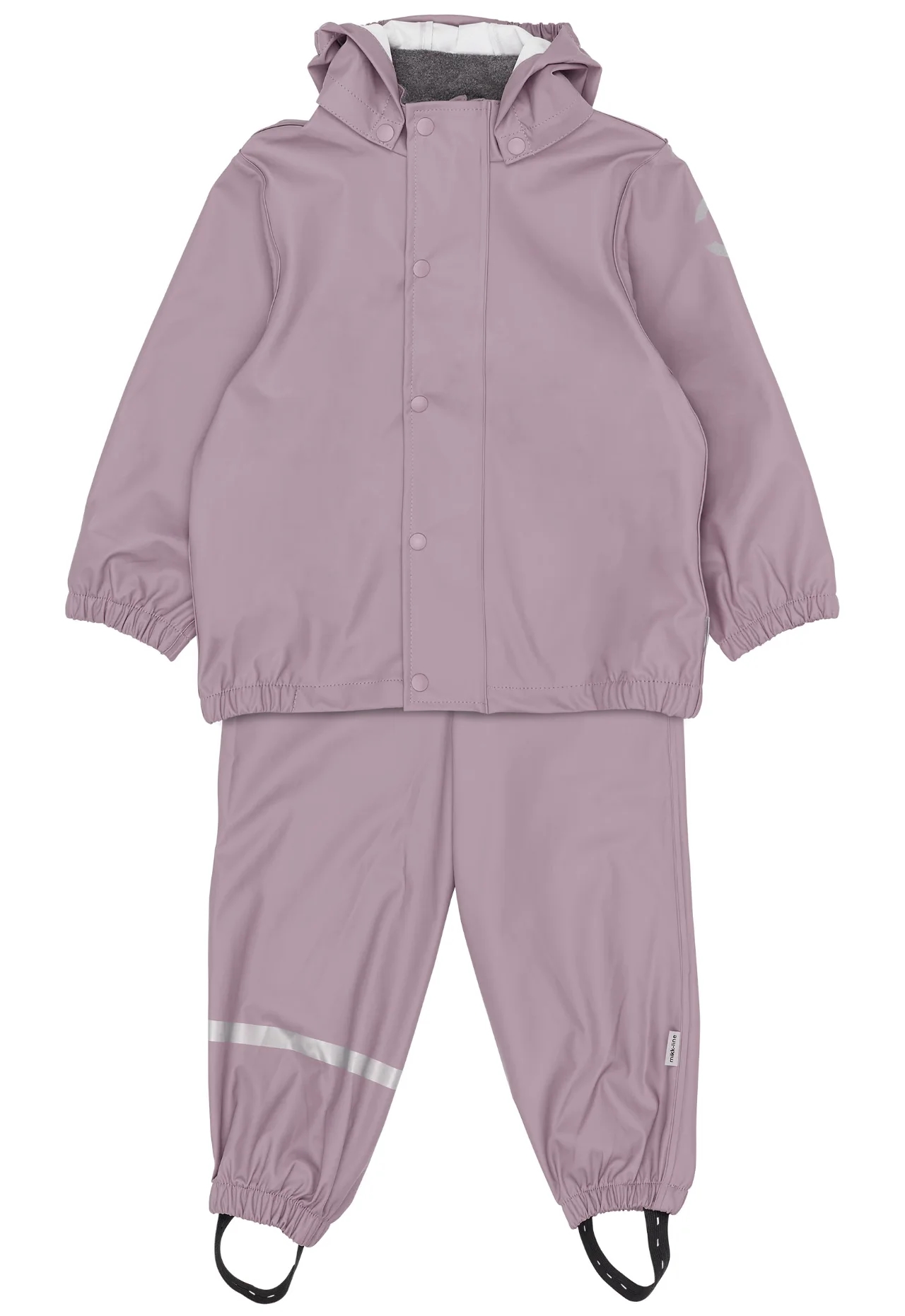 Et praktisk sæt Mikk-Line regntøj i flot, ensfarvet rosa.