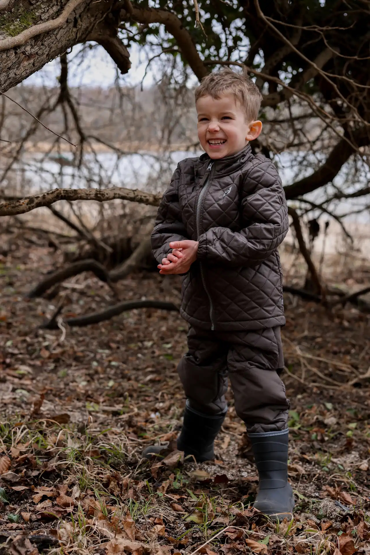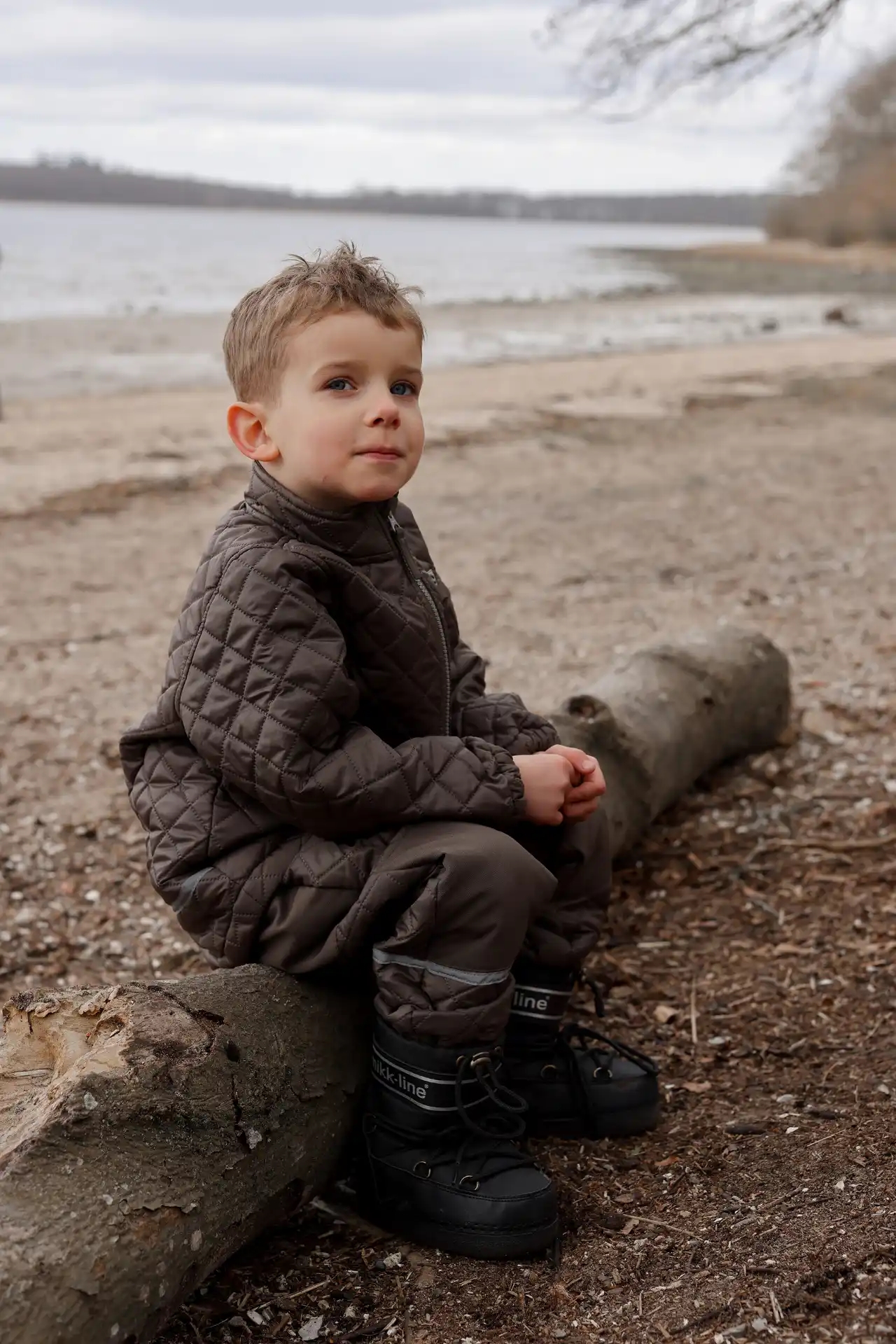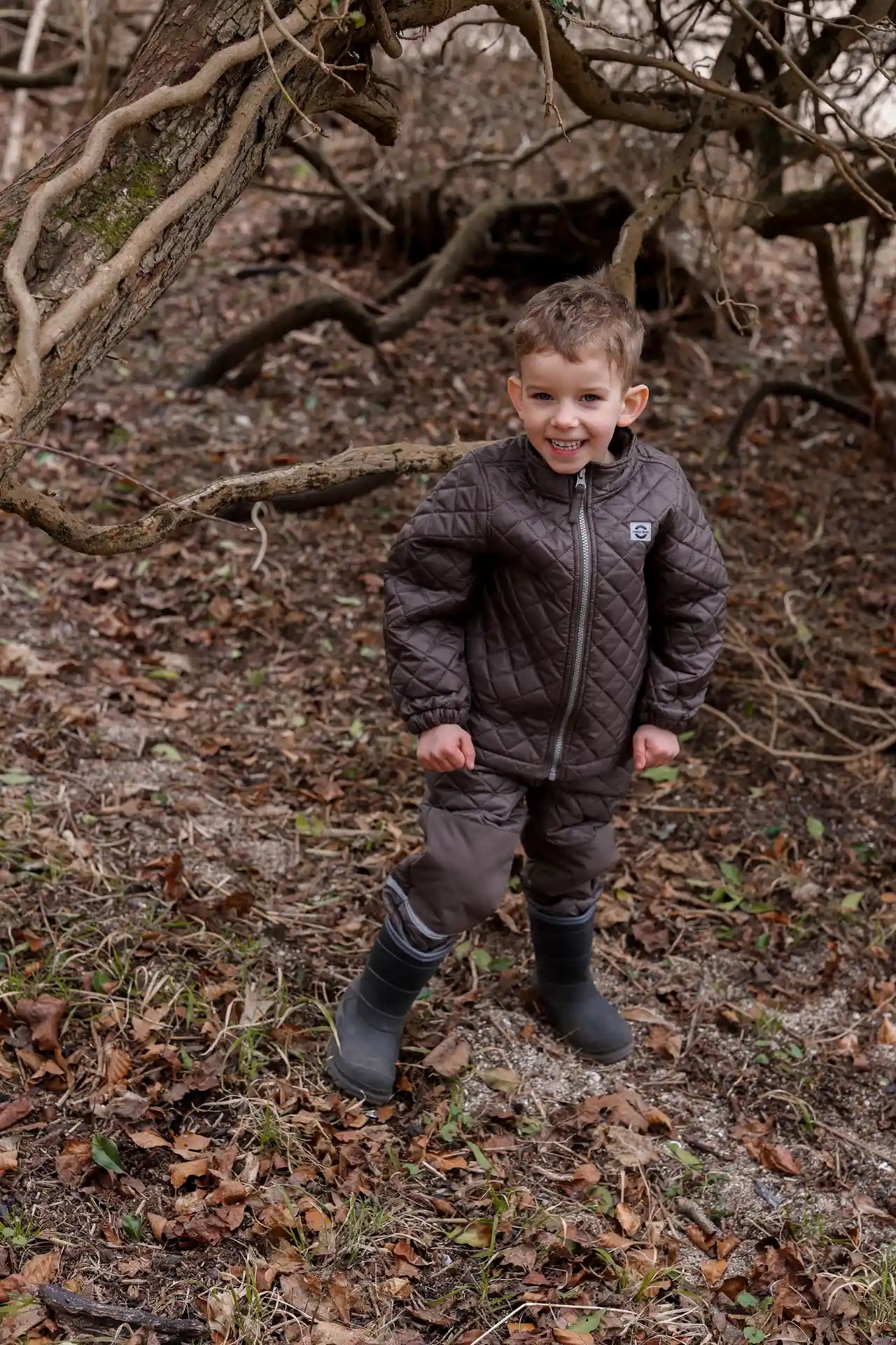 Sættet har ribkanter i ærmer og ben. Jakken lukkes med lynlås og har hagebeskyttelse. Termotøjet har reflekser, så barnet ses. Tøjet har indvendigt navneskilt - praktisk til institutionen.
