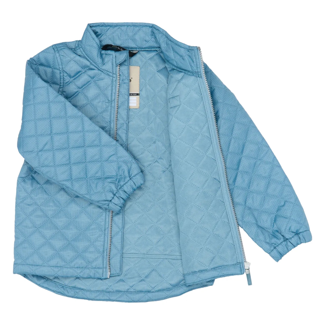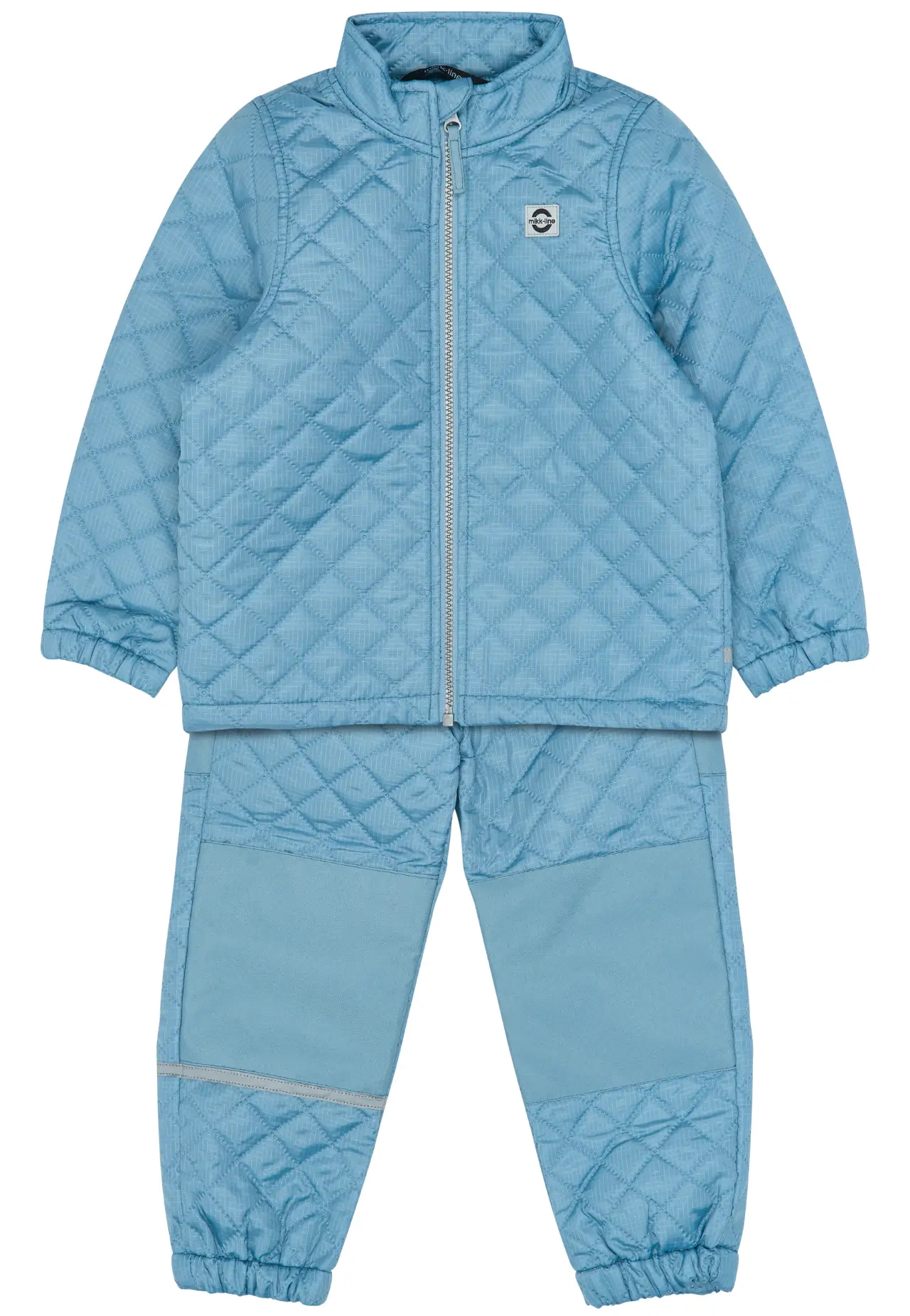 Sættet har ribkanter i ærmer og ben. Jakken lukkes med lynlås og har hagebeskyttelse. Termotøjet har reflekser, så barnet ses. Tøjet har indvendigt navneskilt - praktisk til institutionen.