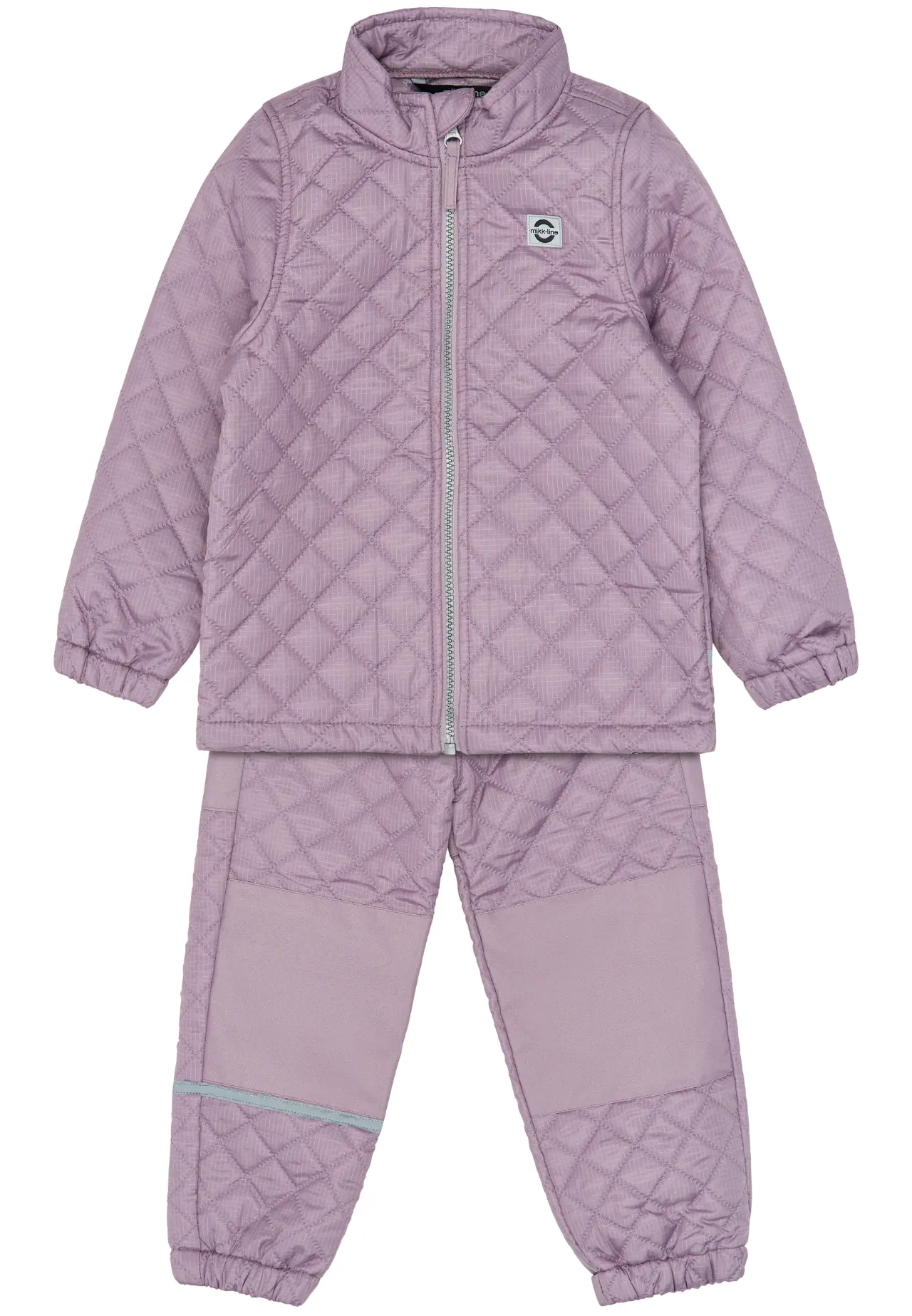 Sættet har ribkanter i ærmer og ben. Jakken lukkes med lynlås og har hagebeskyttelse. Termotøjet har reflekser, så barnet ses. Tøjet har indvendigt navneskilt - praktisk til institutionen.