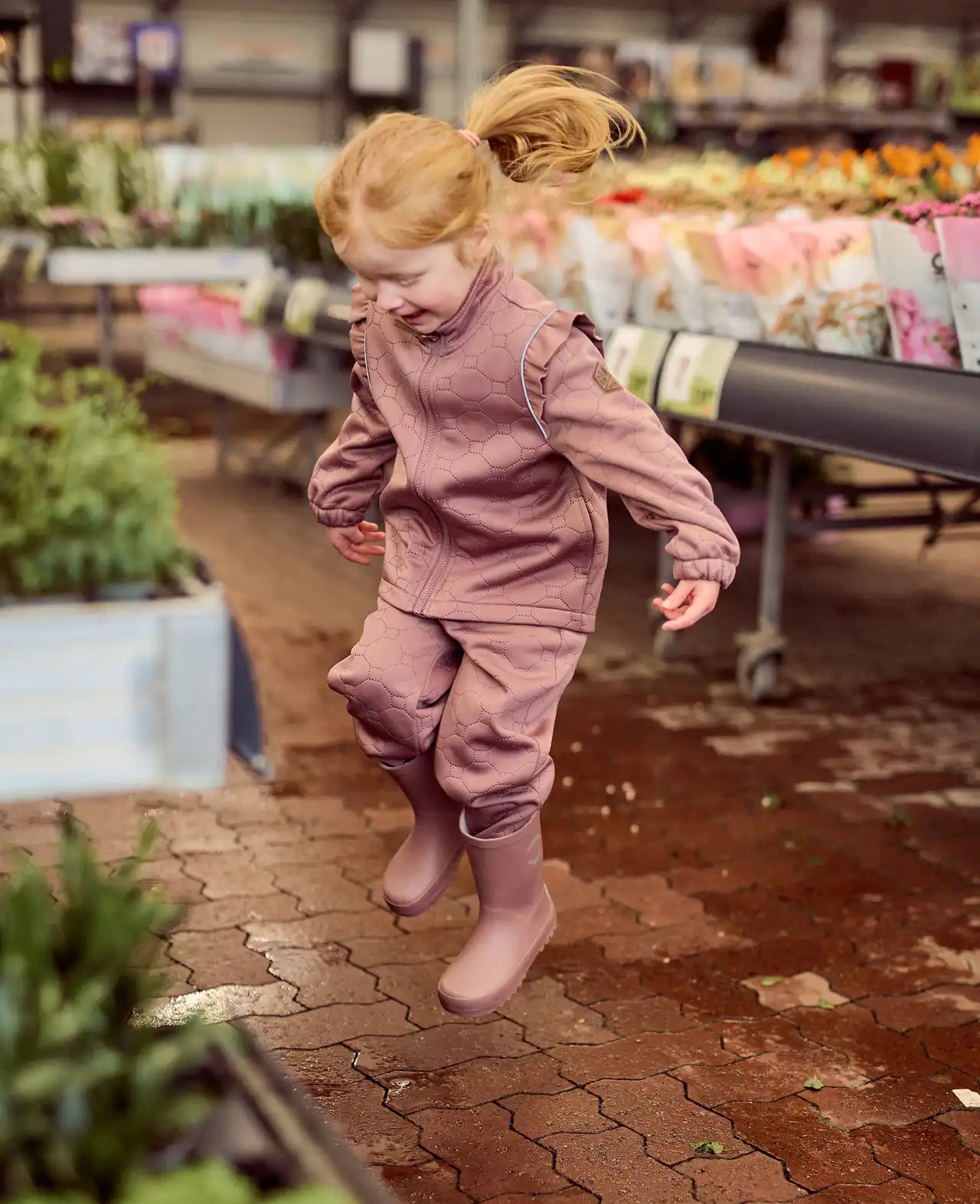 Mikk-line termosættet er ensfarvet rosa og har fine flæsedetaljer, som giver et feminint look uden at gå på kompromis med funktionaliteten. Det er fremstillet i et blødt materiale af genanvendt polyester, der isolerer effektivt og holder kropstemperaturen stabil, når barnet leger udenfor.
