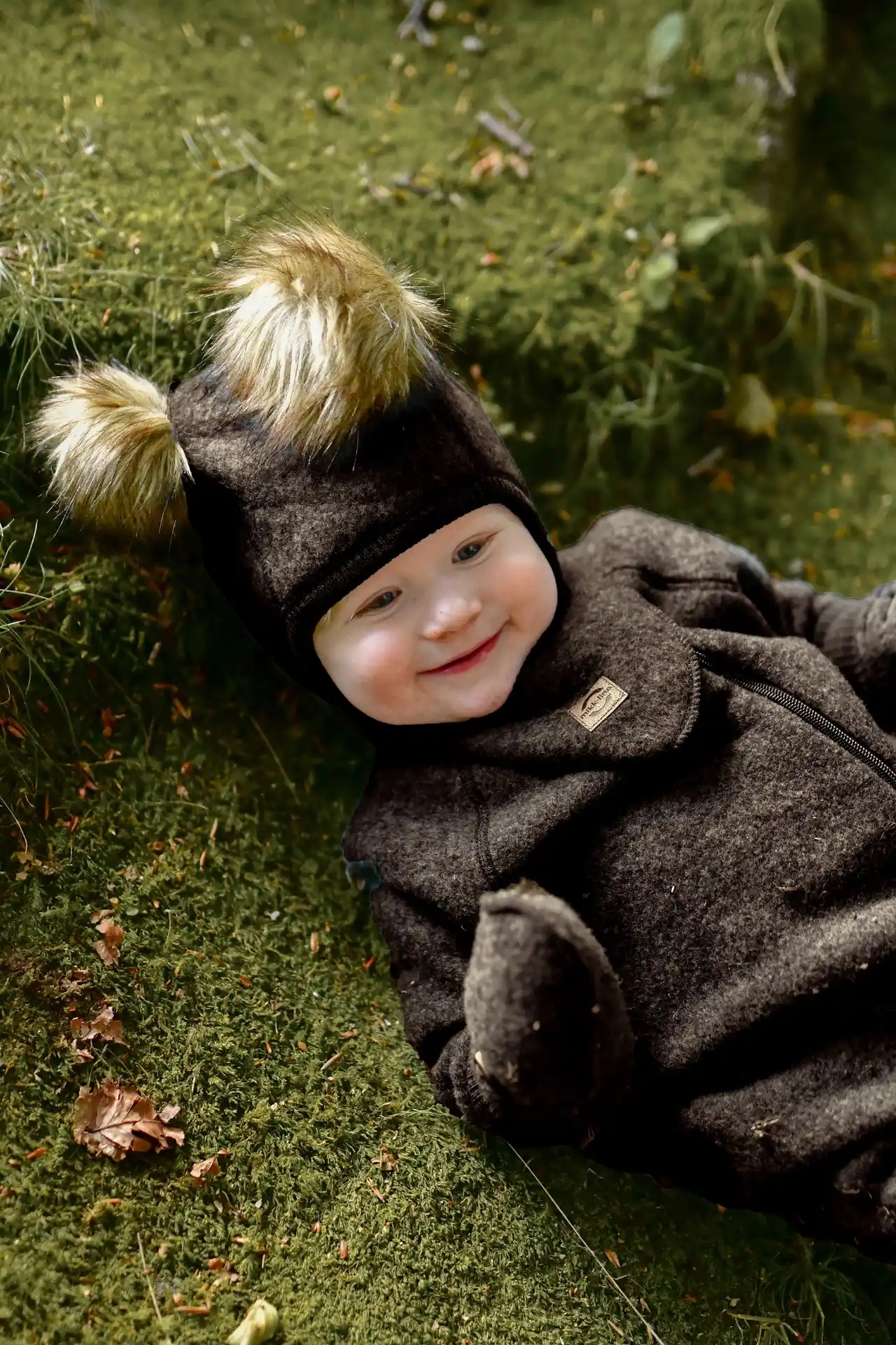 Mikk-line ulddragten er lavet af en lækker børstet uldkvalitet, som er åndbar og har en temperaturregulerende effekt, som kan holde de små varme.