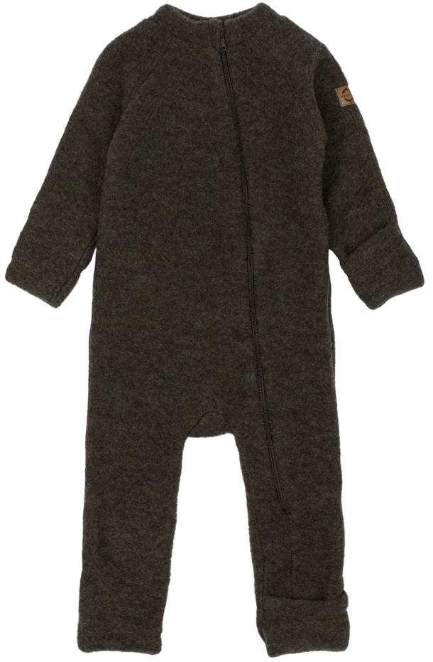 Mikk-Line Ulddragt m/lynlås & ombuk - Dark Brown Melange