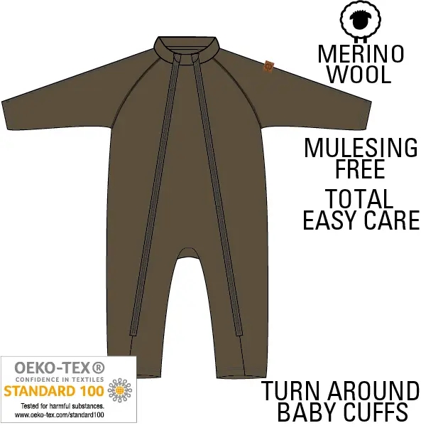 Materiale: 95% merino uld, 5% polyester. Den er certificeret med Oeko-Tex Standard100, alt i ulddragten er dermed testet for skadelige kemikalier som f.eks. PFAS/PFC. Nikkel-fri lynlåse for at undgå allergi.