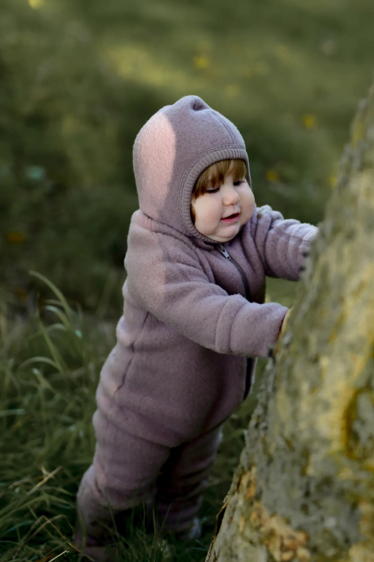 Mikk-line ulddragten er lavet af en lækker børstet uldkvalitet, som er åndbar og har en temperaturregulerende effekt, som kan holde de små varme.