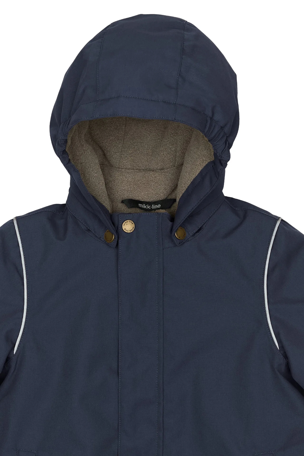 Mikk-line jakken er lavet i slidstærkt polyester og foret med blød polyesterforing og quiltet fyld, der giver optimal isolering uden at føles tung. Perfekt til både hverdagsbrug, leg i institutionen, skolegården og sjove vintereventyr i naturen.