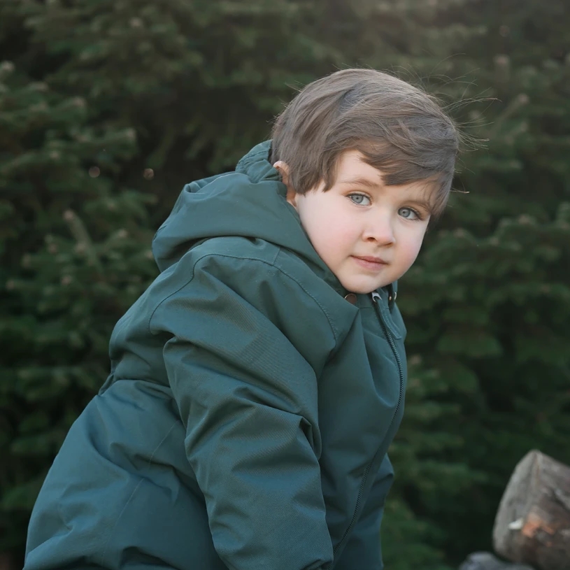 Mikk-line jakken er lavet i slidstærkt polyester og foret med blød polyesterforing og quiltet fyld, der giver optimal isolering uden at føles tung. Perfekt til både hverdagsbrug, leg i institutionen, skolegården og sjove vintereventyr i naturen.