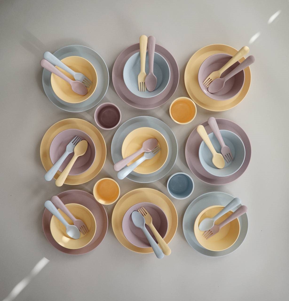Til kopperne kan der tilkøbes matchende børneservice fra Mushie.