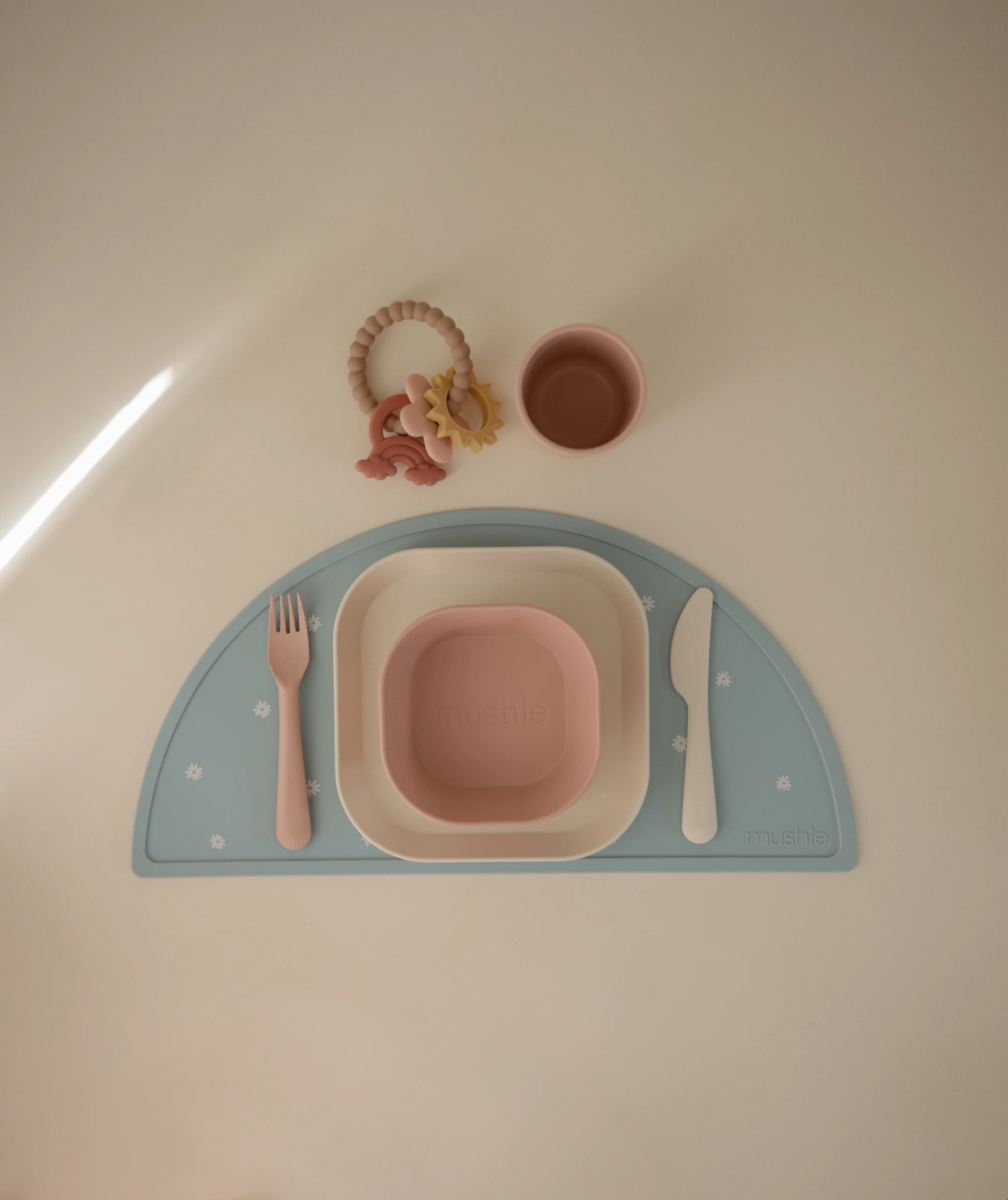 Kombinér tallerkenen med Mushies andre produkter til børnemåltidet for at skabe et flot sæt.