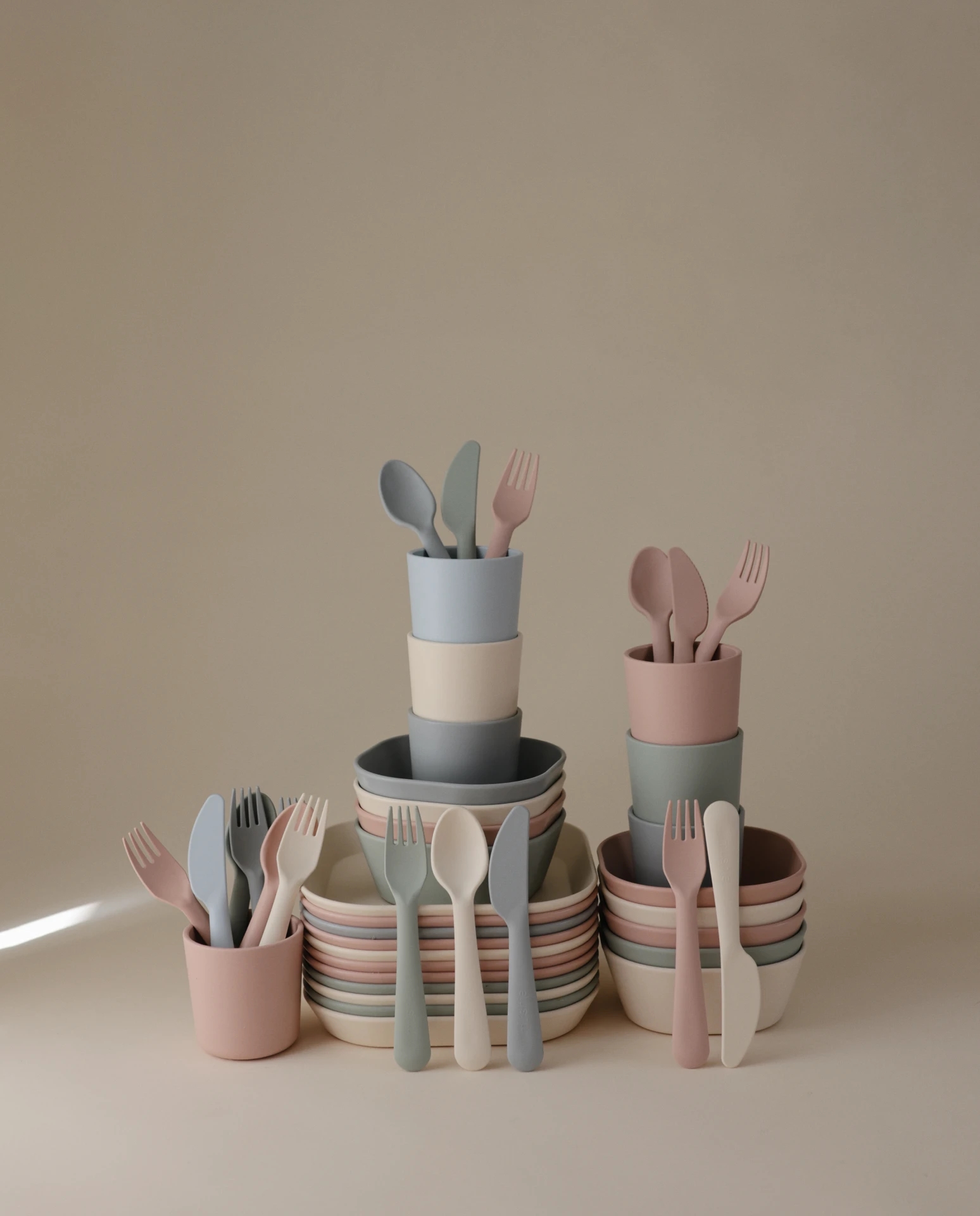 Til kopperne kan der tilkøbes matchende børneservice fra Mushie.