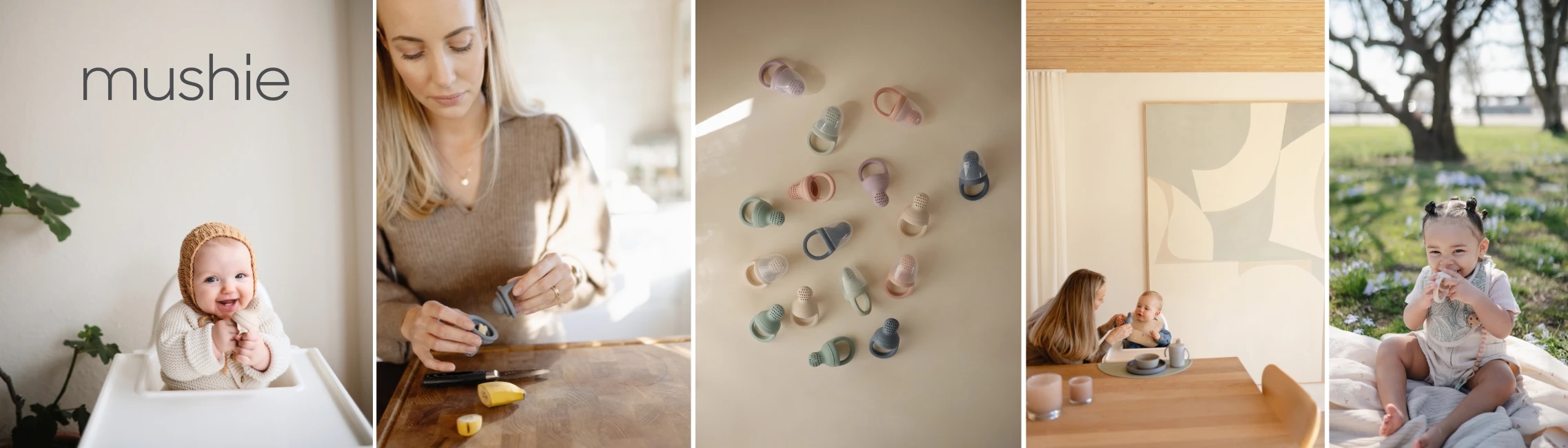 Mushie food feeder, også kendt som Mushie frugtsutter, er et innovativt spiseredskab til sikkert at introducere fast føde til babyer. Med sin fødevaregodkendte silikonebeholder tillader Mushie food feeder kun saft og små stykker af fx frugt eller grønt at passere. Food feederen kan med fordel også bruges til at lindre ømhed under tandfrembrud ved at bruge frossen frugt i beholderen. Den er nem at bruge og rengøre og har et design, der fremmer barnets selvstændighed.