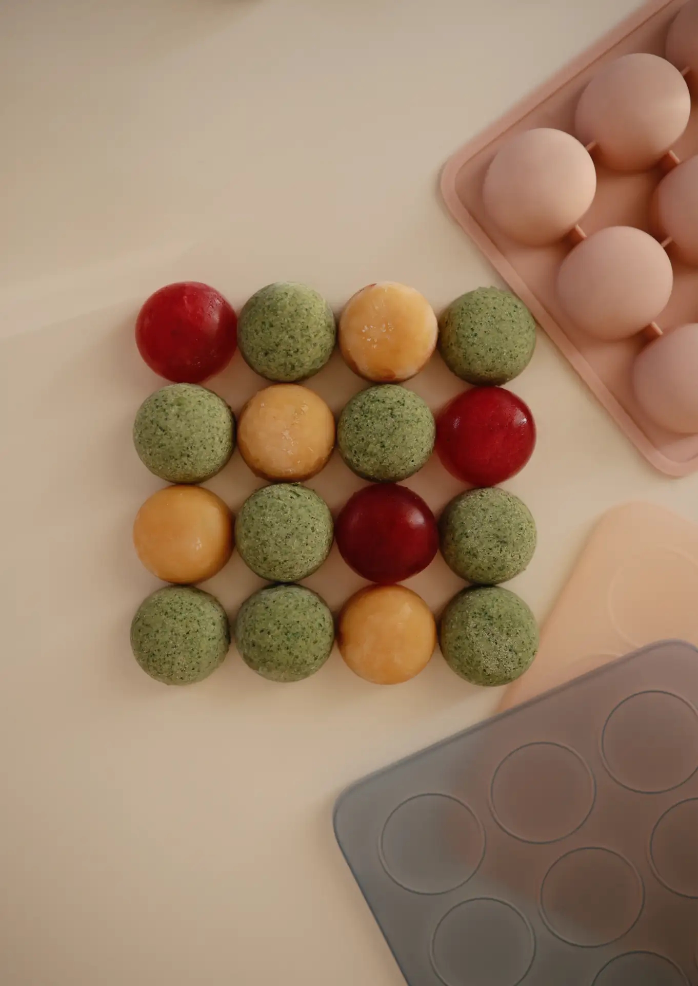 Den praktiske Mushie frysebakke eller fryse babymad beholder, som den også kaldes, er lavet i silikone, så det er nemt at trykke madportionerne ud.