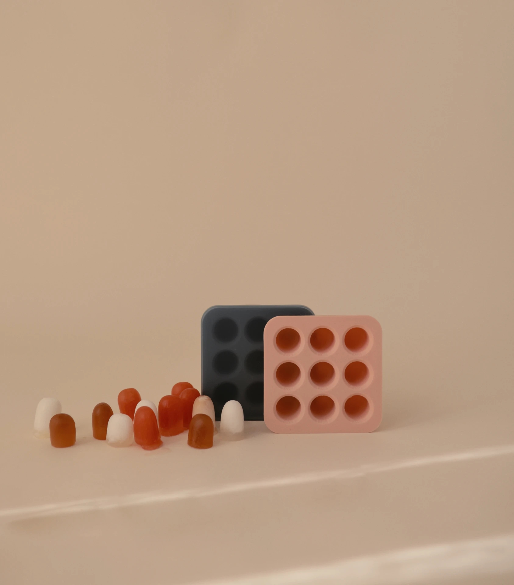Den praktiske Mushie frysebakke eller fryse babymad beholder, som den også kaldes, er lavet i silikone, så det er nemt at trykke madportionerne ud.