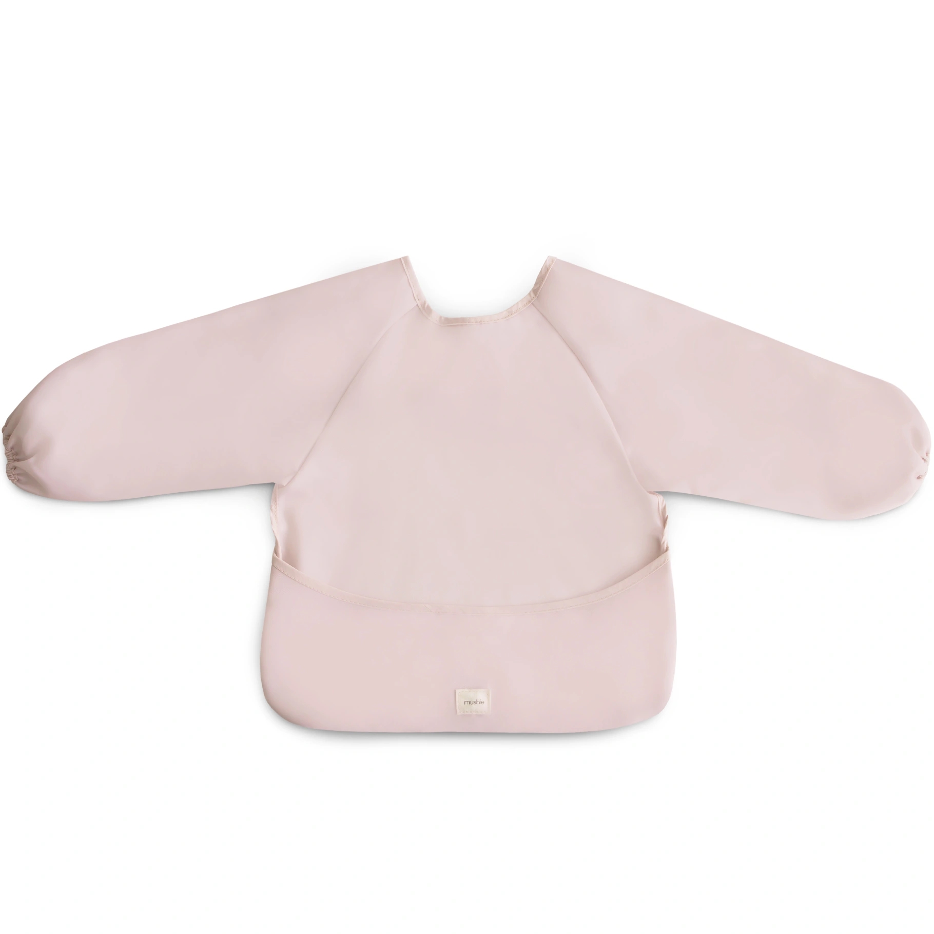En praktisk Mushie hagesmæk med ærmer til at gribe spildt mad og drikke.