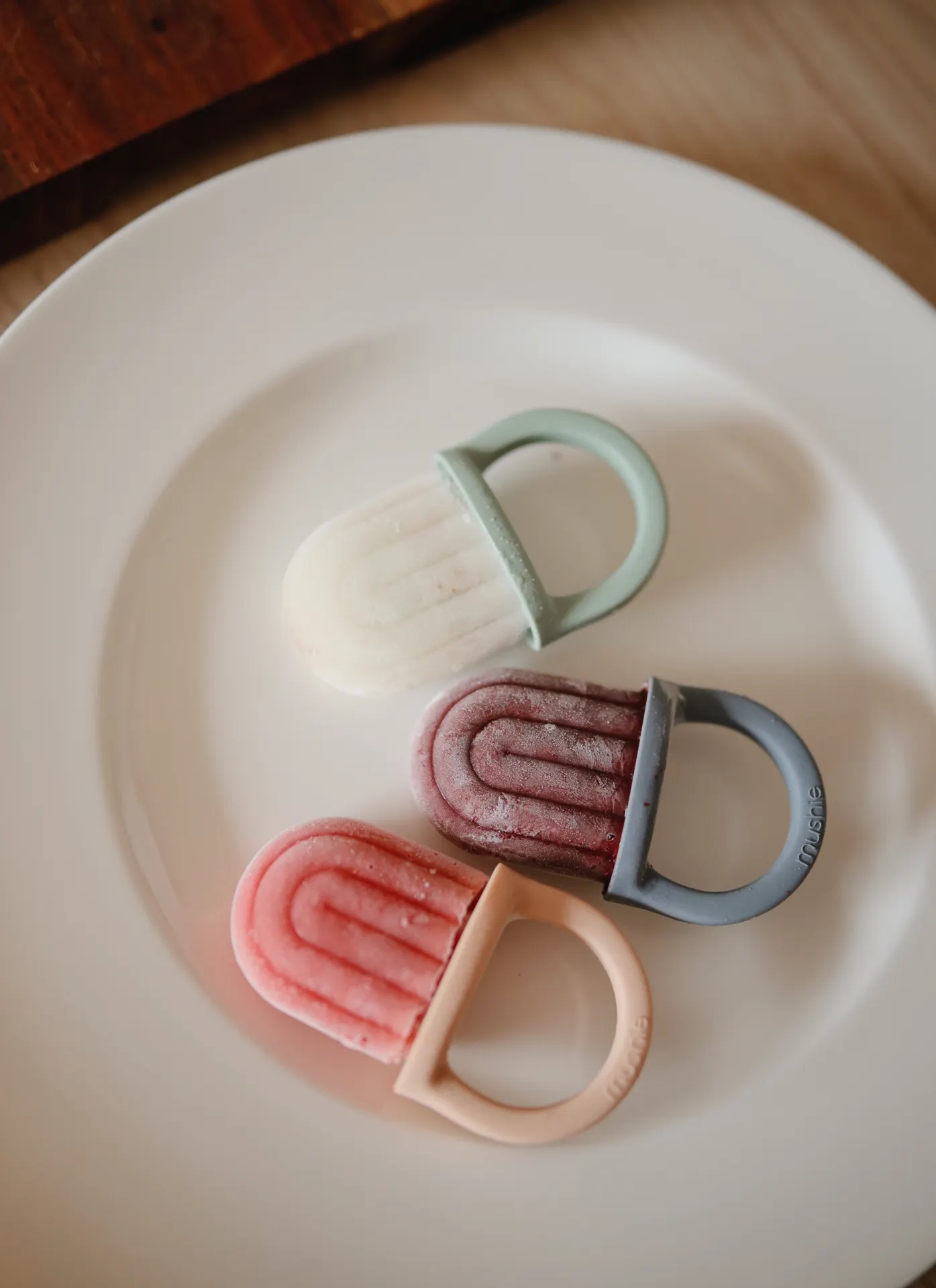 Med Mushie isformen kan du gøre snacktid sjov og spændende. Isformen er regnbueformet og har fire ispinde.