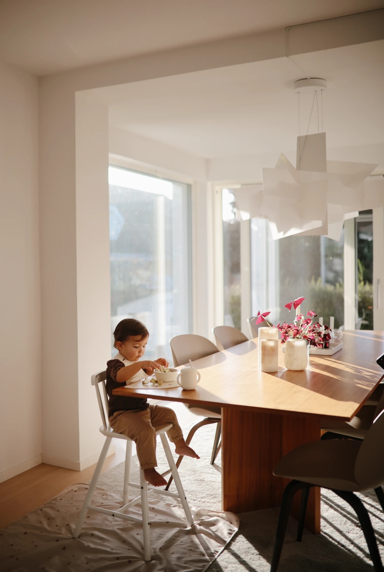 Mushie stoleunderlaget er perfekt som underlag til højstol, da det kan maskinvaskes.