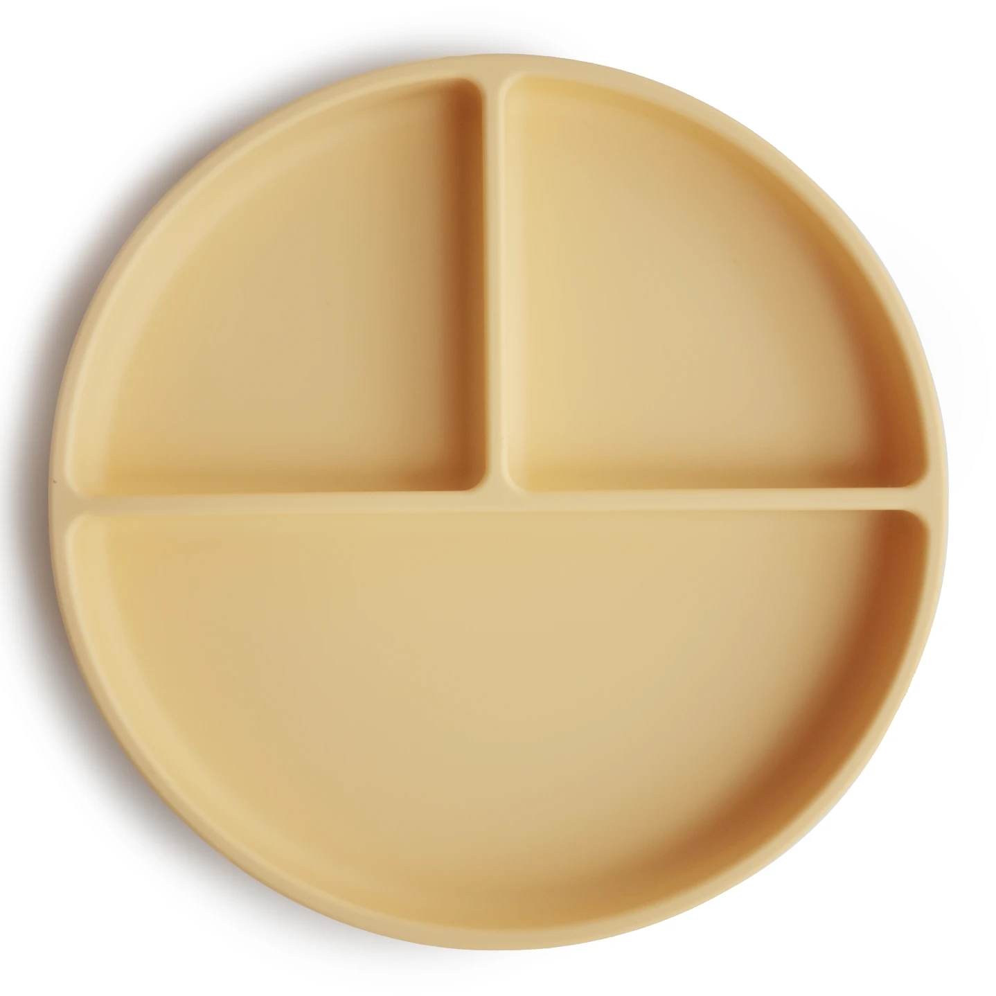 Flot Mushie tallerken med sugekop lavet i silikone i flot pastelgul.