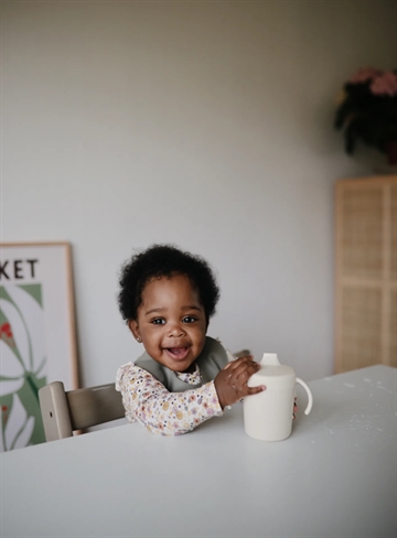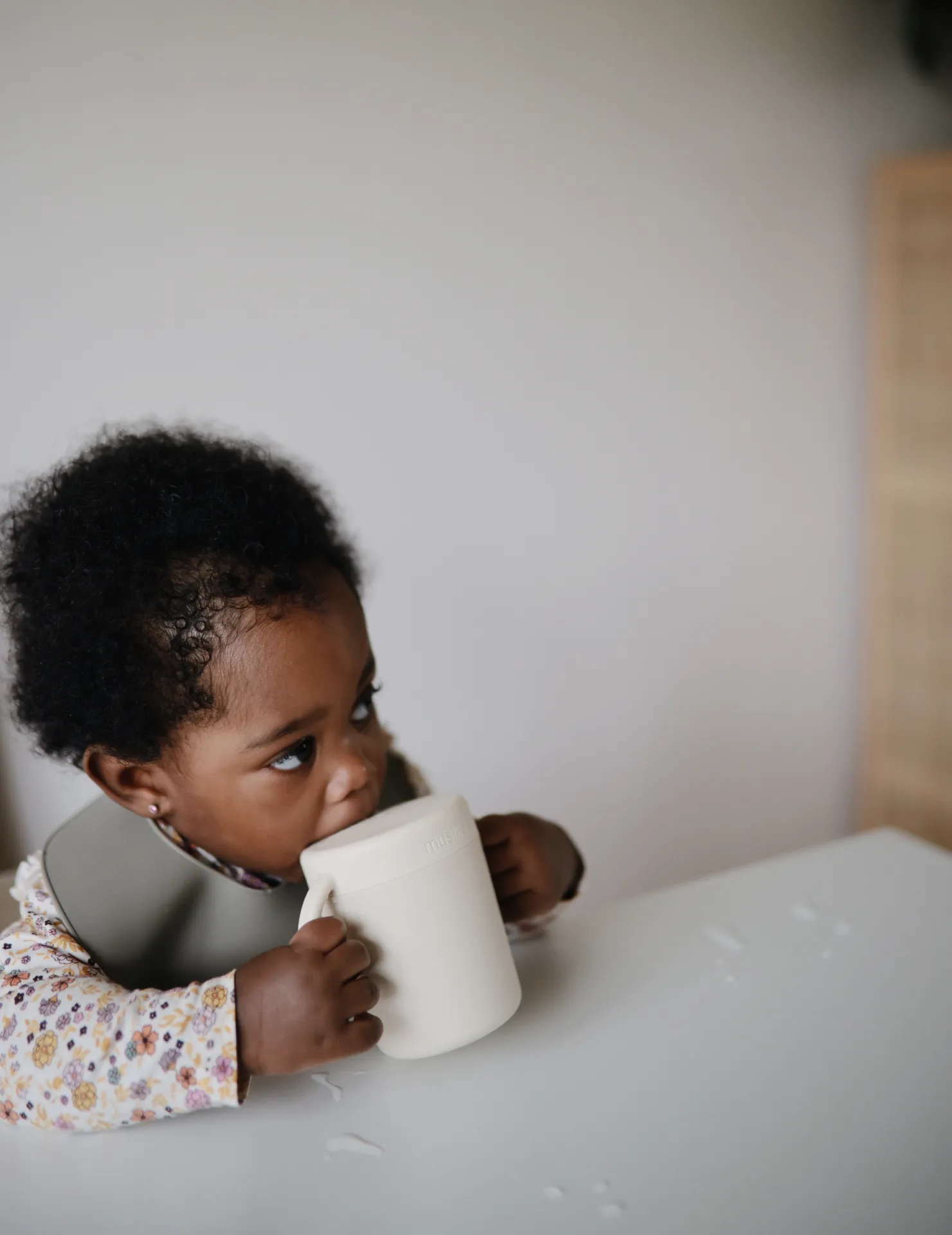 Når barnet begynder overgangen fra sutteflaske til kop, er tudkoppen fra Mushie en god hjælp til at udvikle finmotorik og selvstændige spisevaner.