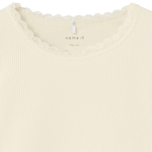 Name It T-shirten er i en flot lys nuance med rib og en smule puf på ærmerne.