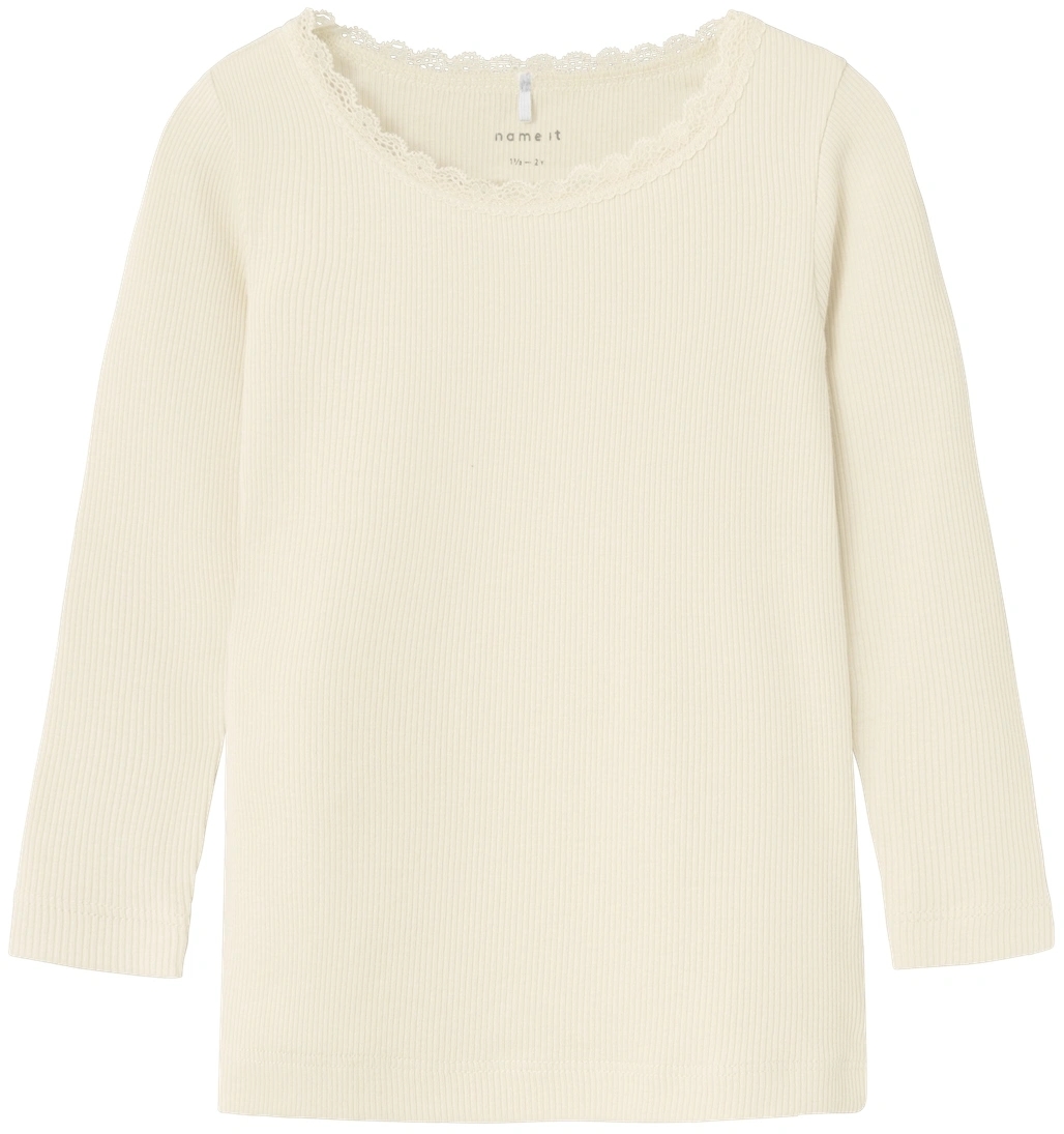 Name It blusen er i en flot, lys beige nuance med en sød blondekrave.