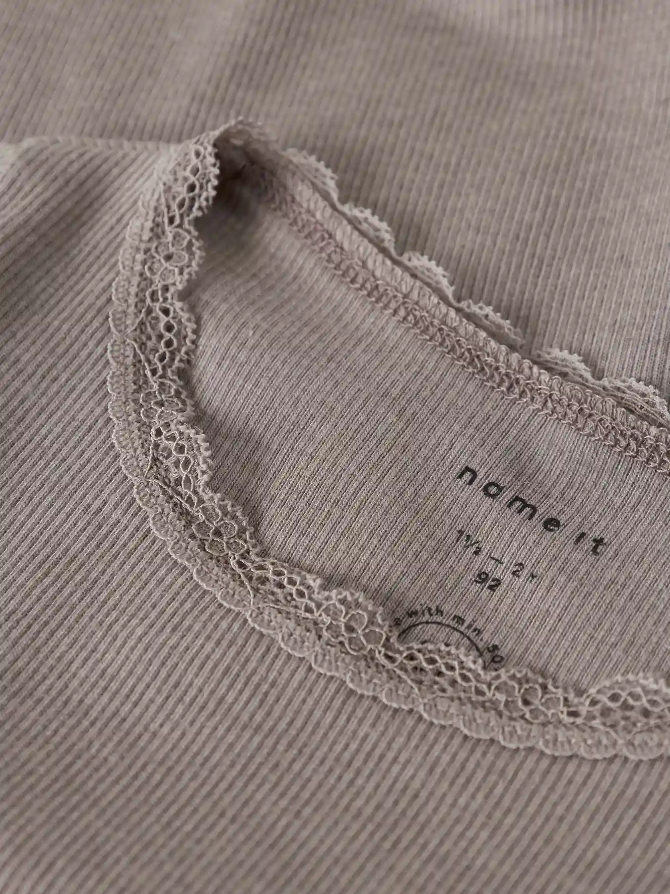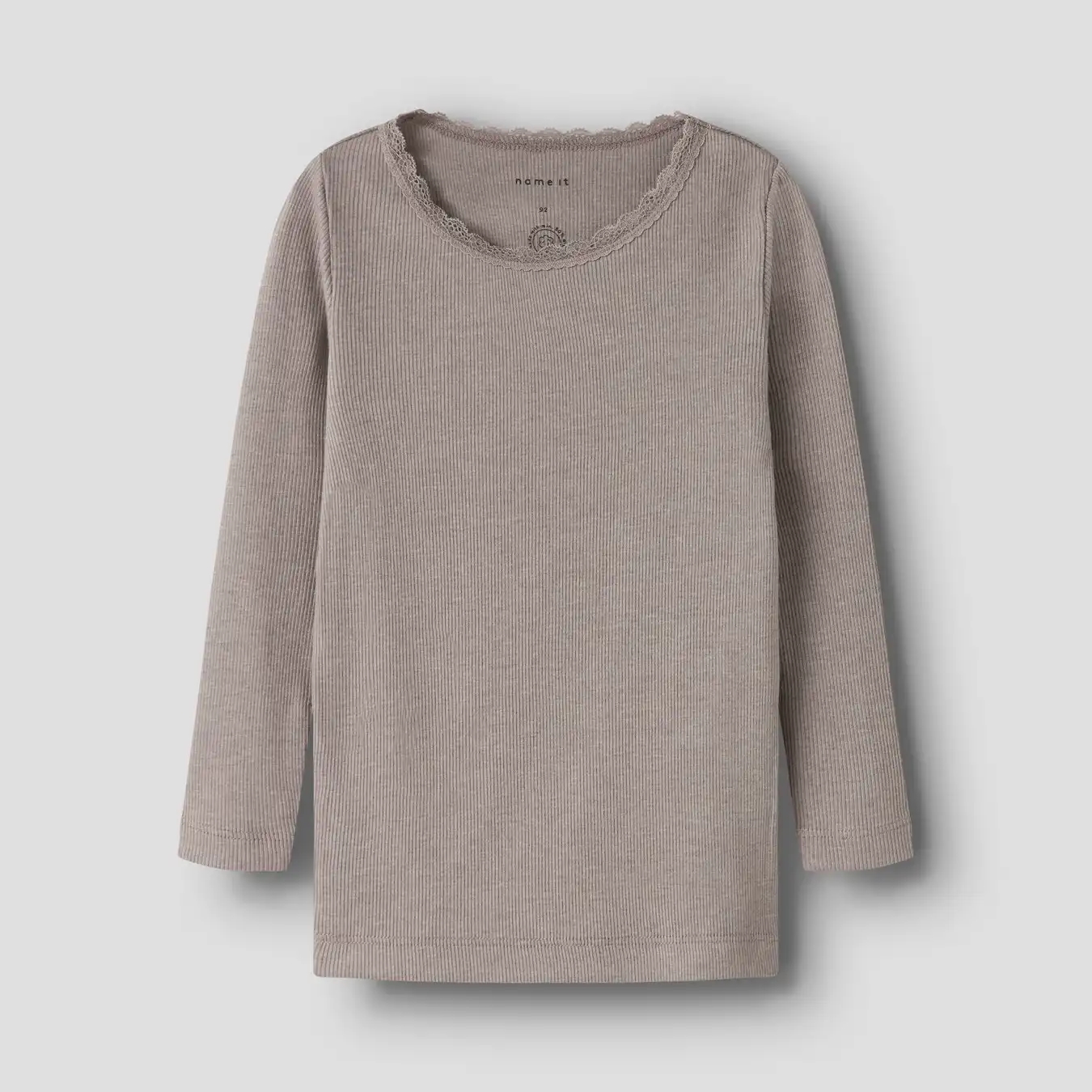 Name It blusen er i en varm, meleret grå nuance med en fin lille blondekrave.