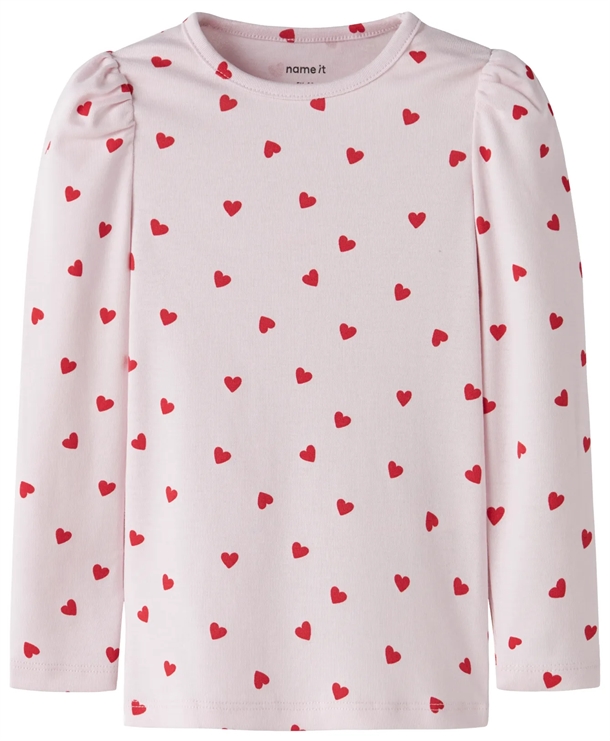Name It Bluse - nmfbHEART - Cradle Pink - rosa med røde hjerter