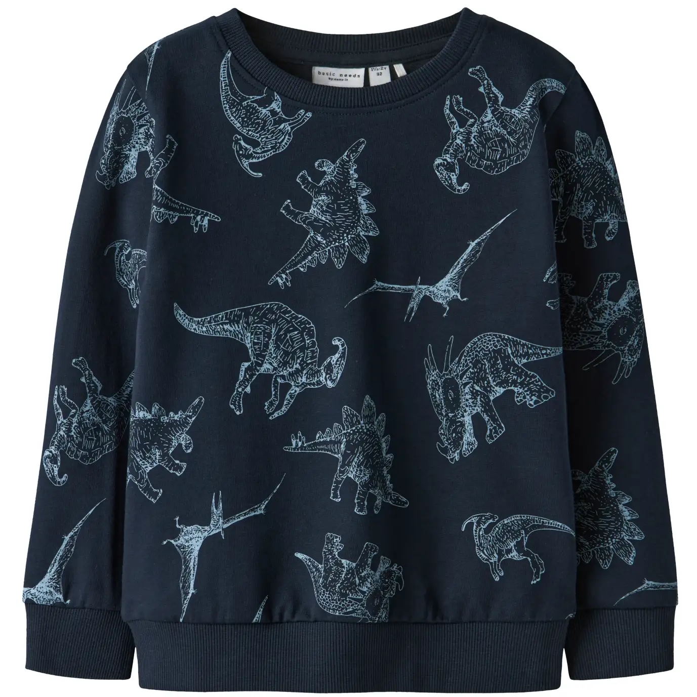 En flot Name It bluse i mørkeblå med et fedt dinosaur print.