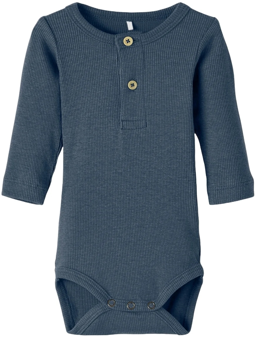 Name It bodyen er i flot, meleret blå og er lavet med rib og to knapper foran.