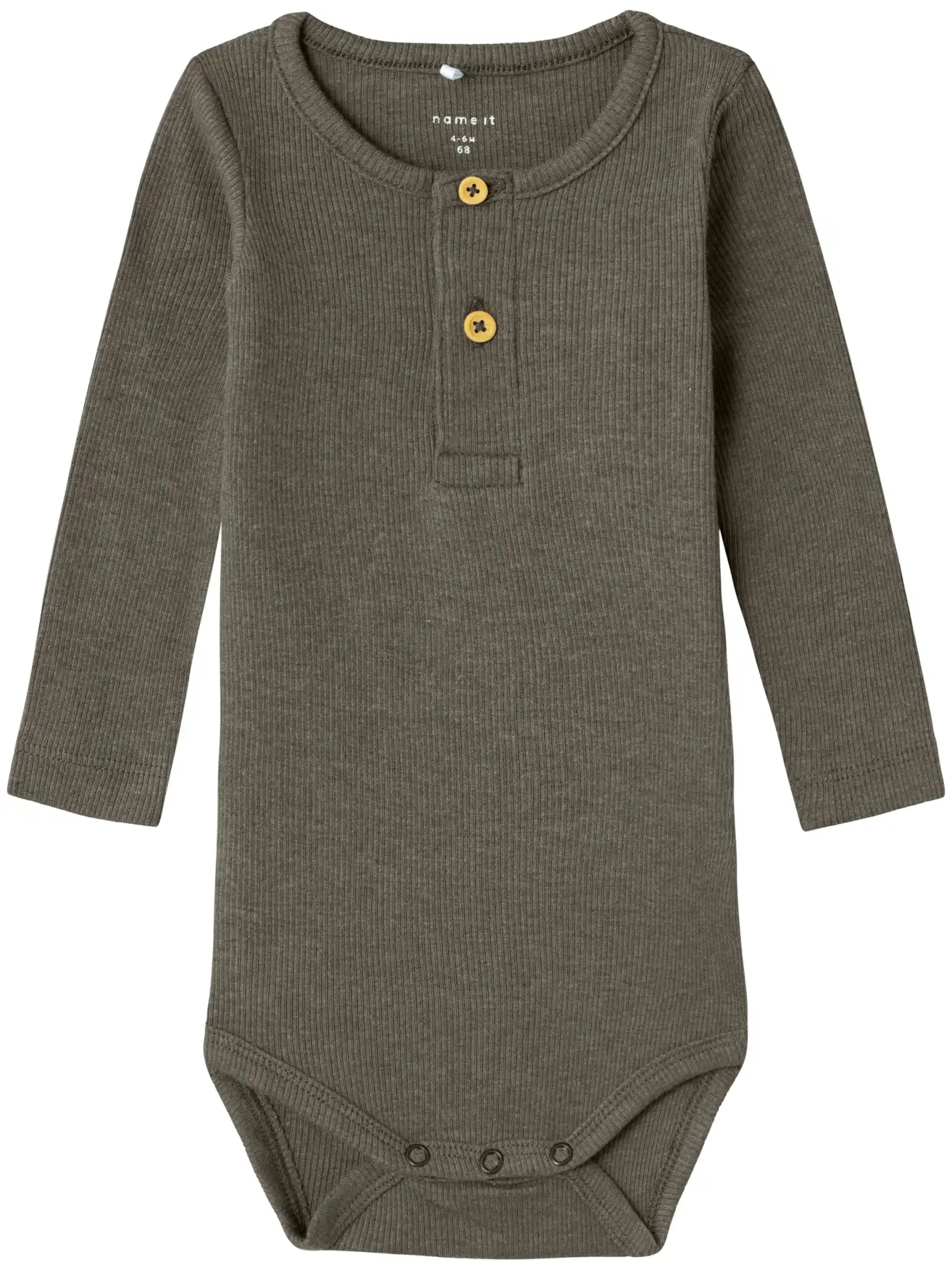 Name It bodyen er i en flot grøngrå nuance og er lavet med rib og to knapper foran.