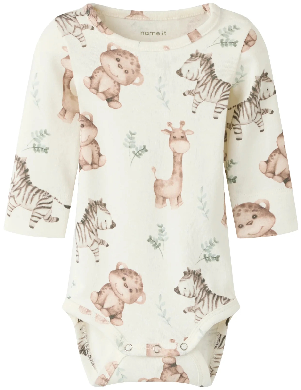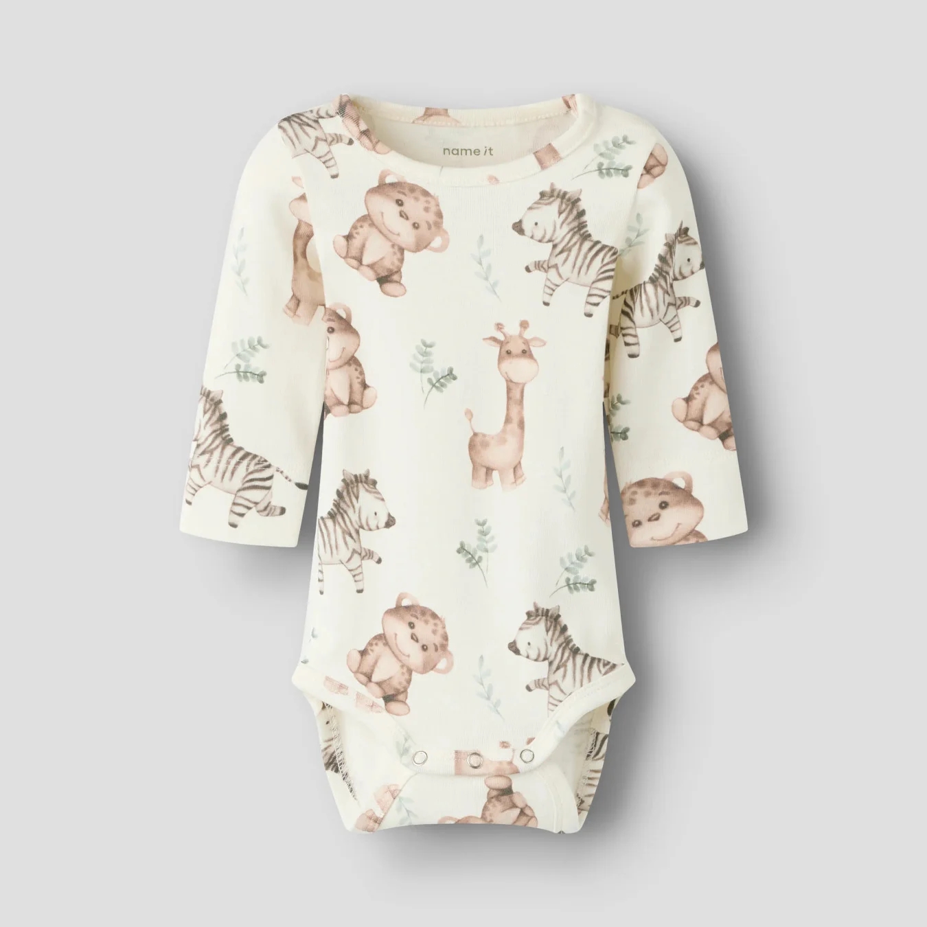 Name It bodyen er i en lys farve med det sødeste print af dyreunger.