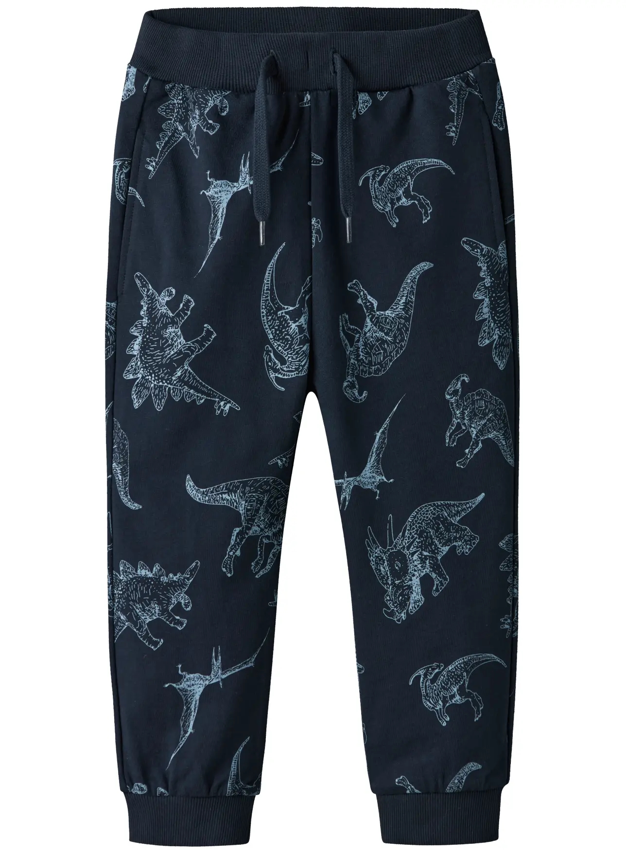Flotte Name It bukser i mørkeblå med dinosaur print.