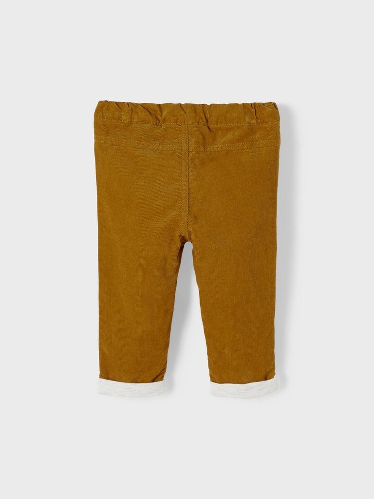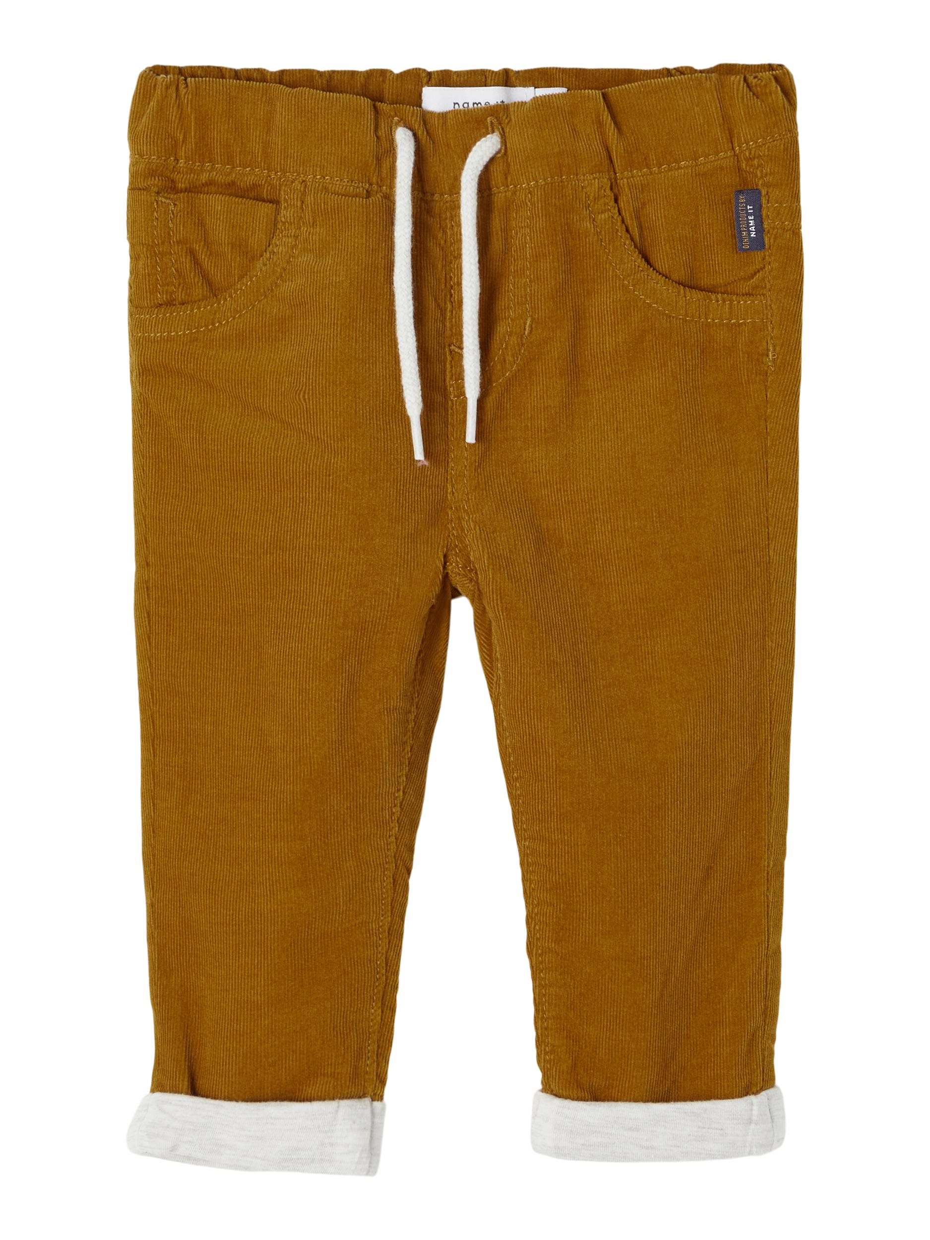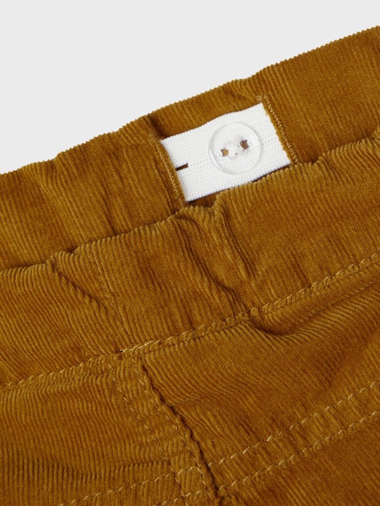 Skønne Name It bukser i twill vævet stof i en flot gylden nuance i unisex til de mindste. Bukserne har to lommer foran. Bukserne er med bindesnøre og har en indvendig regulerbar elastik, så de kan tilpasses taljen. Lavet i økologisk bomuld er dejlig bløde.