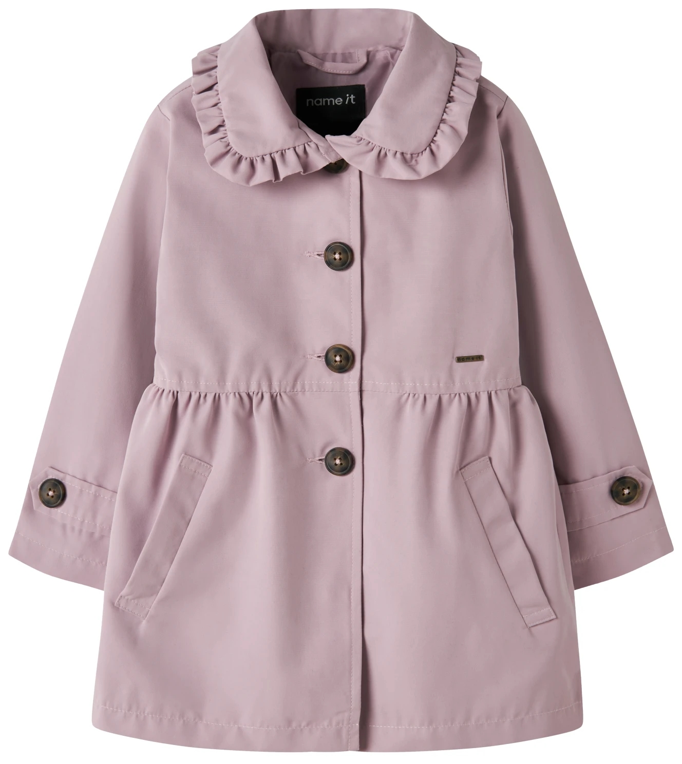 Name It frakken er i en flot, støvet rosa nuance og er med en sød flæsekrave.