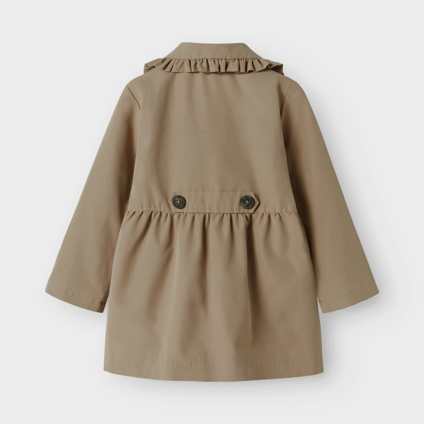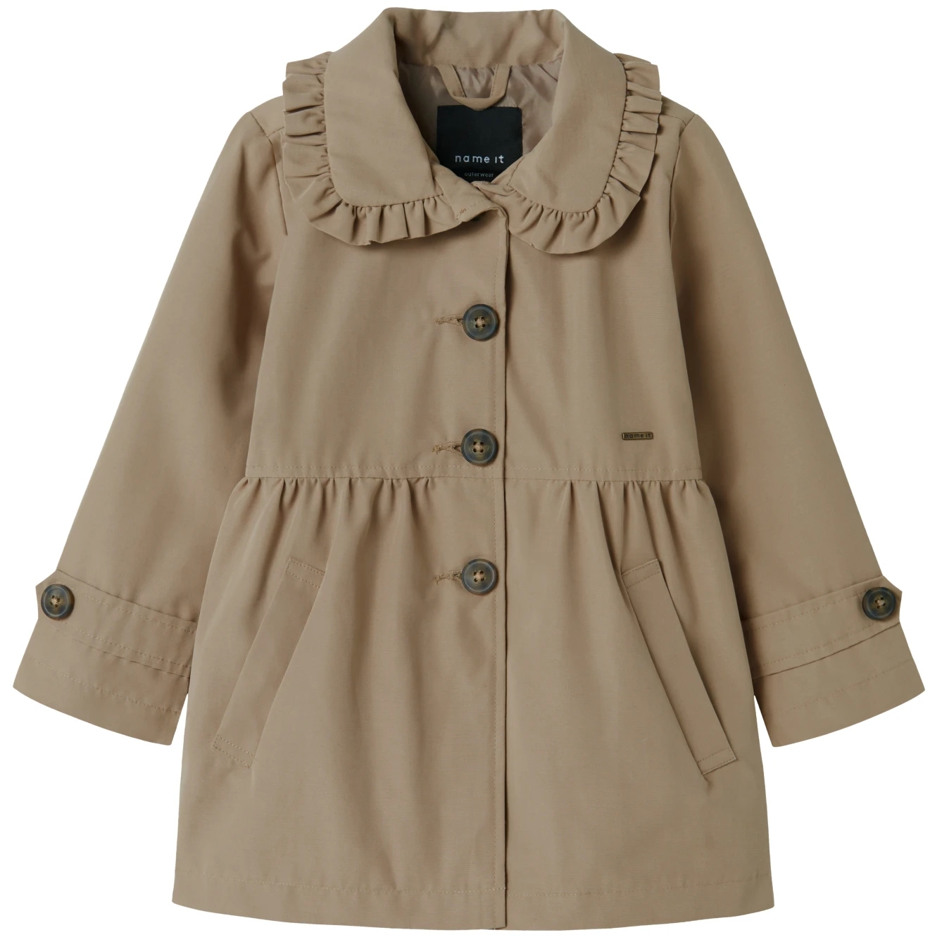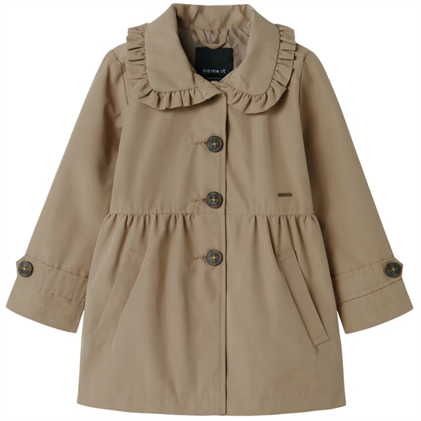 Name It frakken er beige og er med en sød flæsekrave.