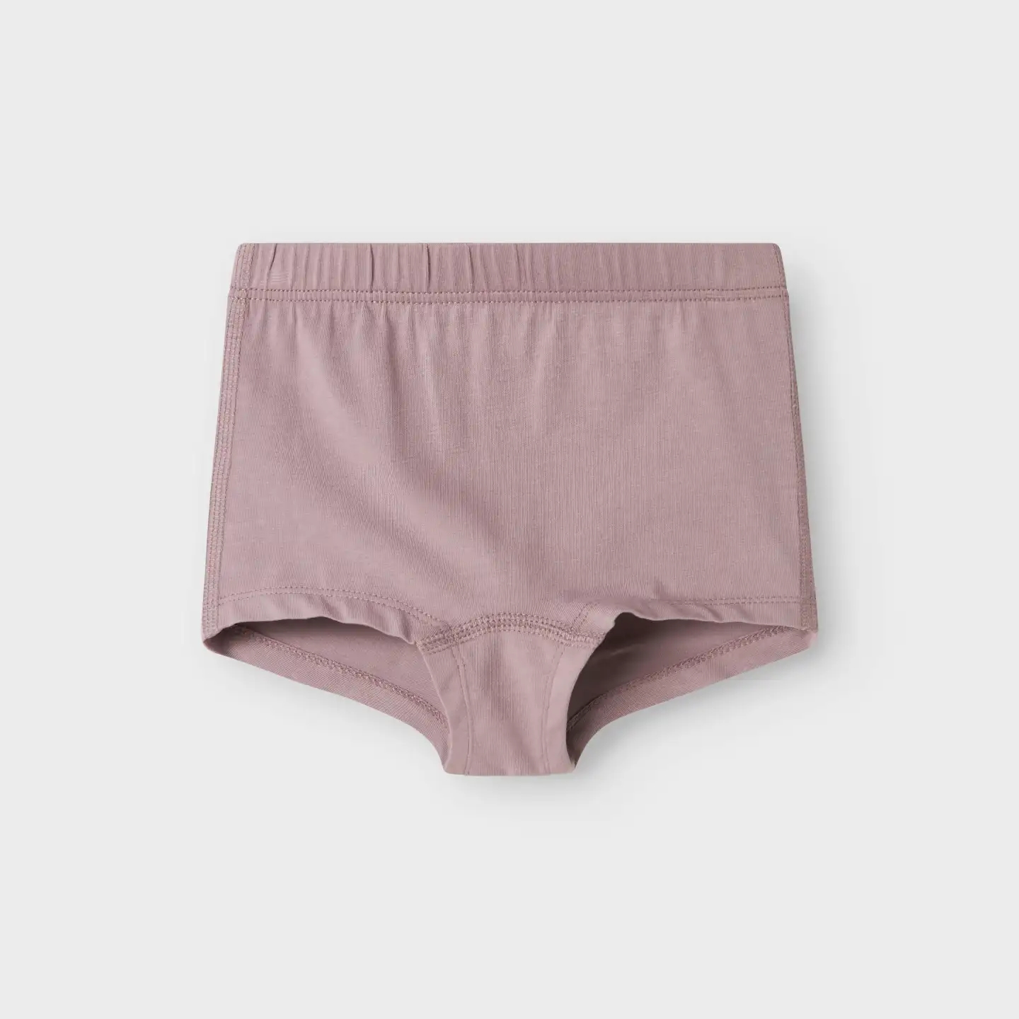 Pakken indeholder en Name It hipster i ensfarvet rosa, ensfarvet mørkrosa og en i rosa med print af fine sløjfer.