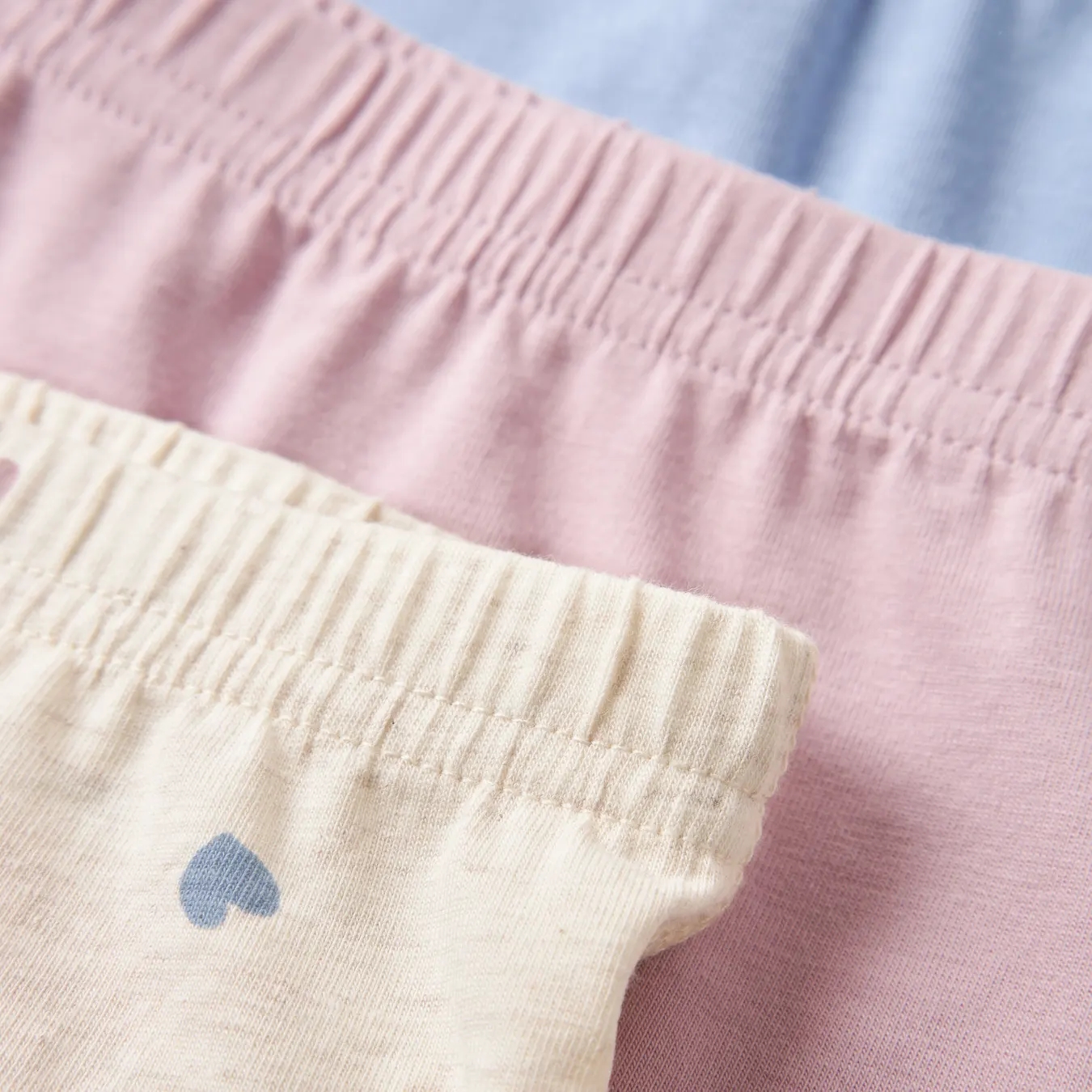 Pakken indeholder en Name It hipster i ensfarvet rosa, ensfarvet støvet blå og en i meleret beige med små hjerter på.