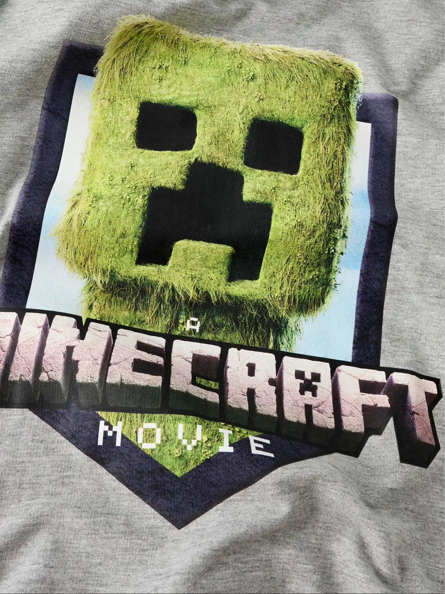 Name It blusen er i meleret grå og er med en sej, grøn creeper fra Minecraft foran.