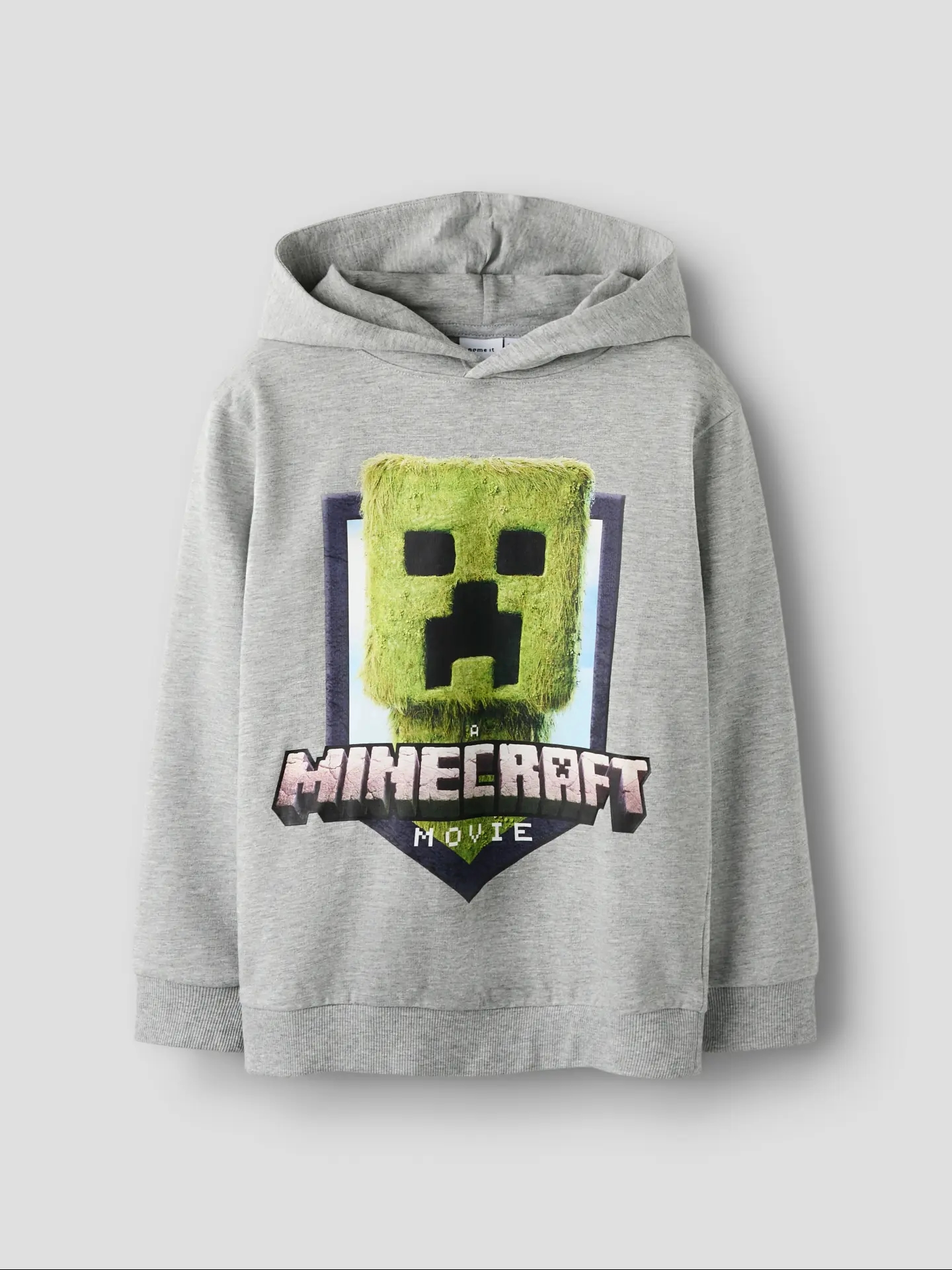 Name It Minecraft Hættetrøje - NKMOL Creeper - Grey Melange