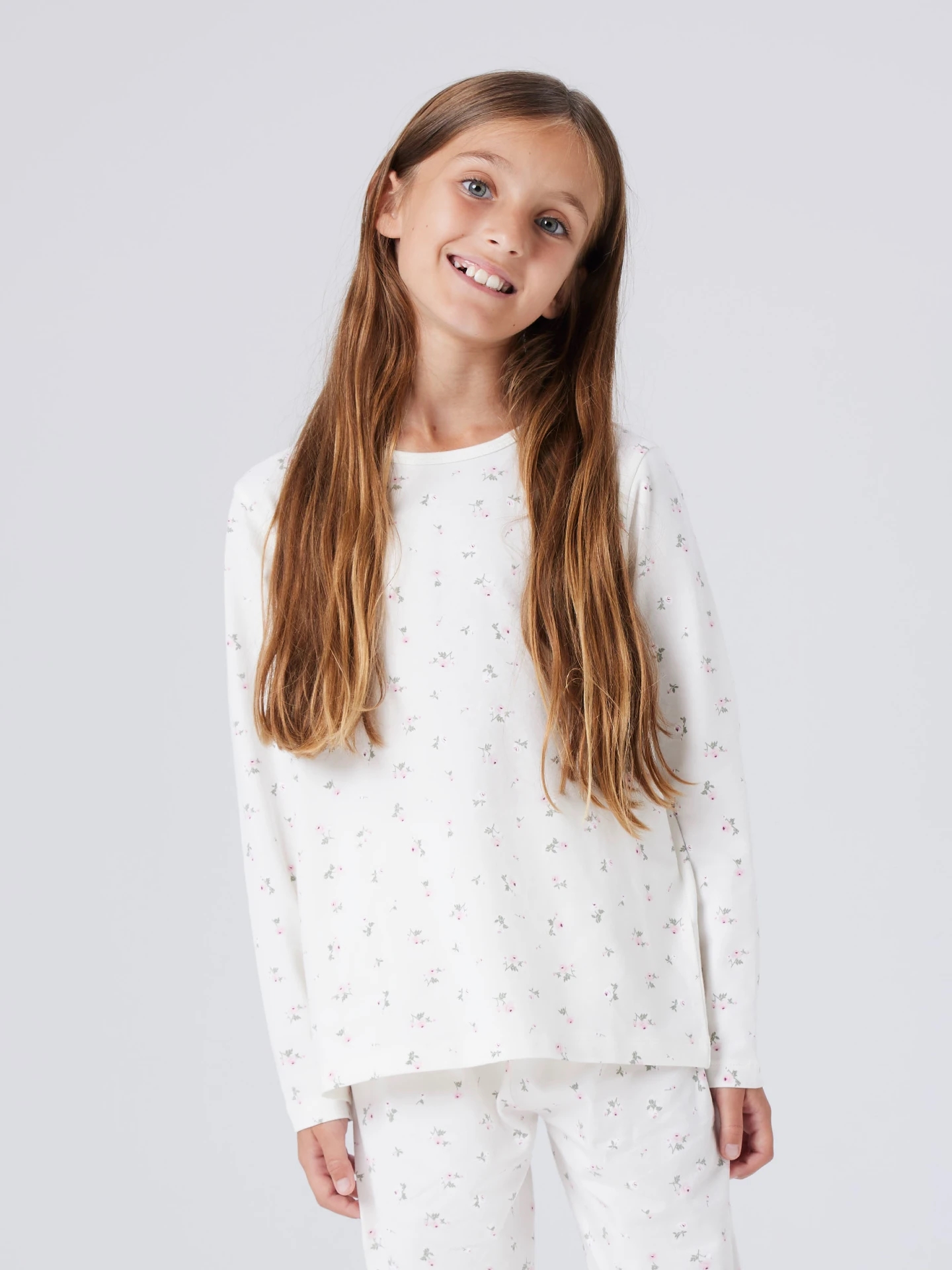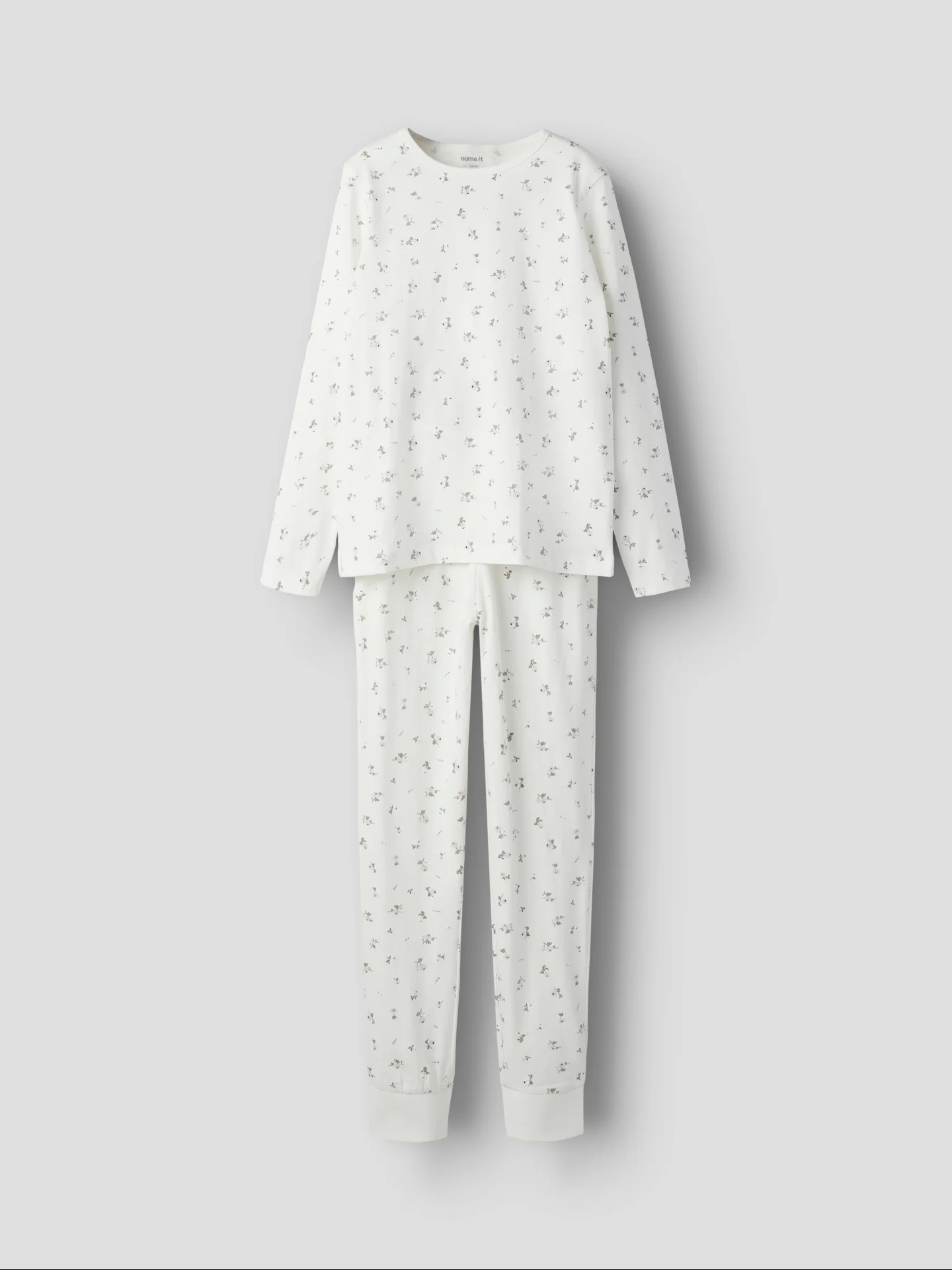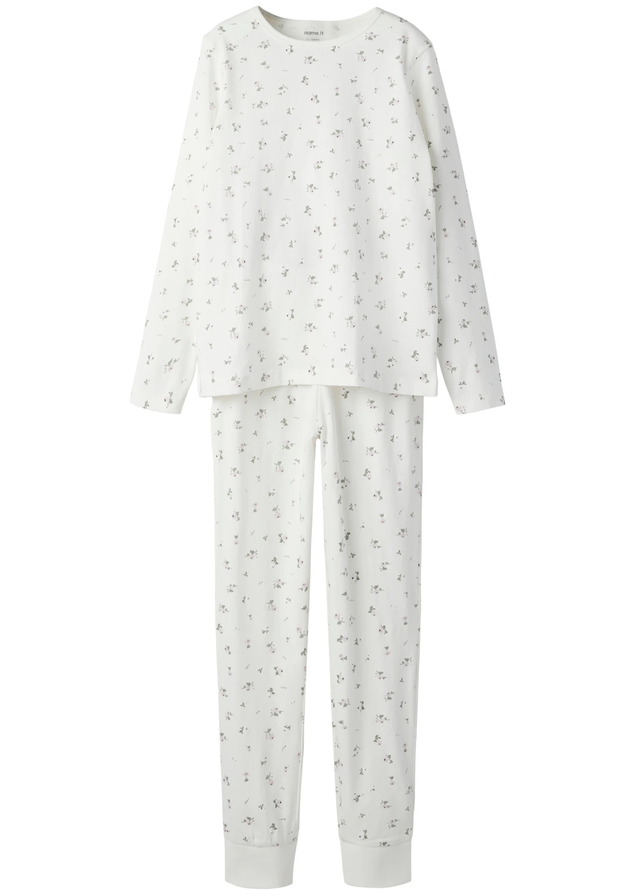 Name It nattøjet er cremehvidt med et fint og enkelt blomsterprint.