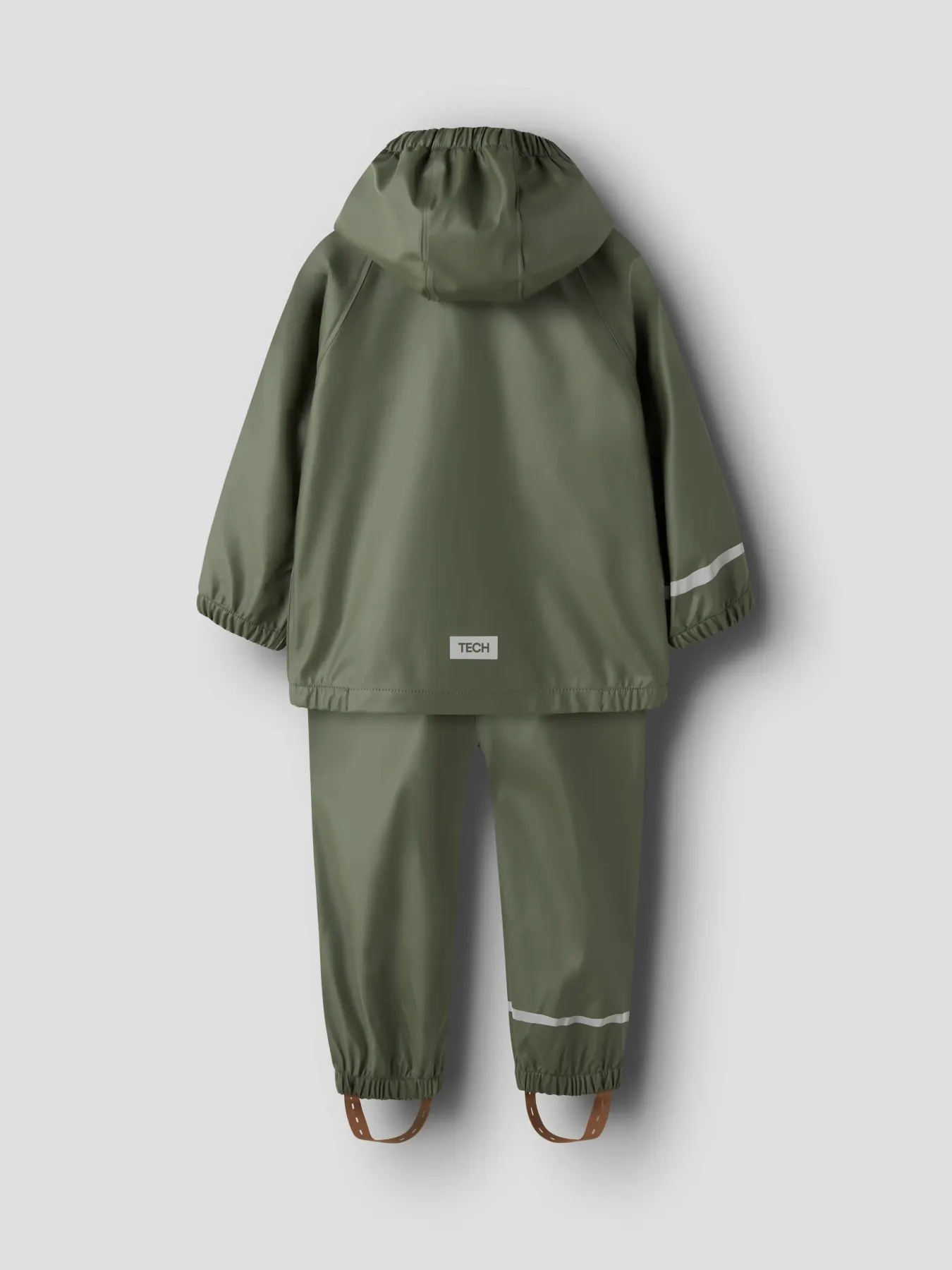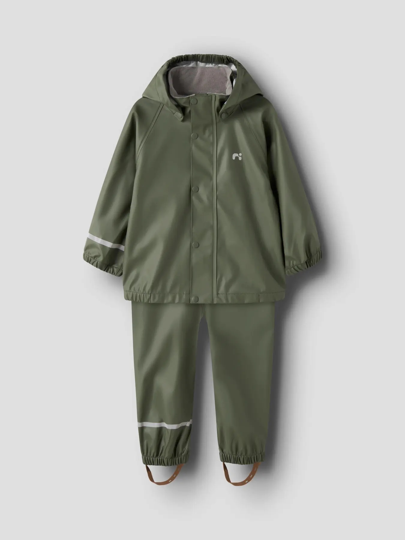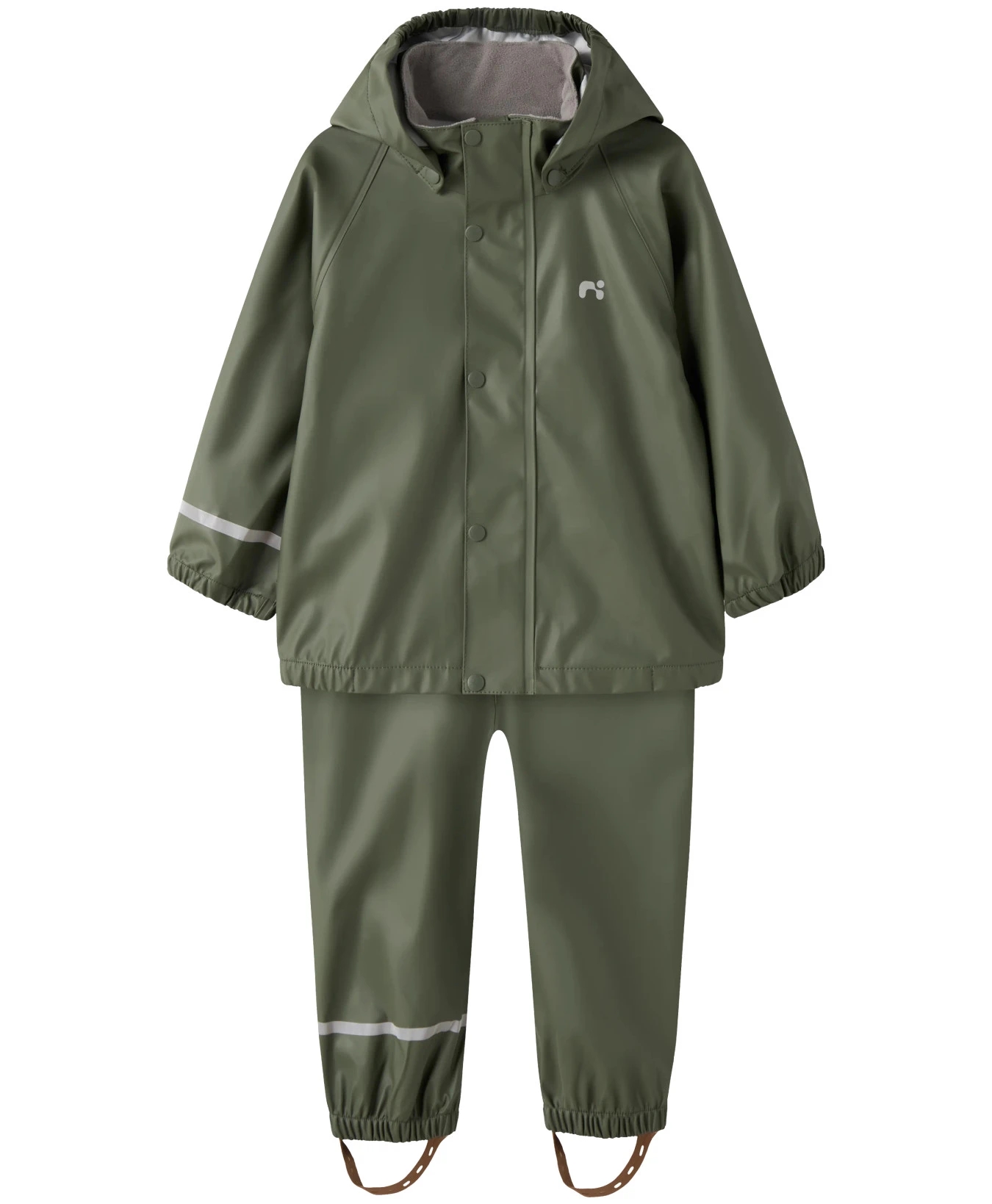 Praktisk Name It regntøj i ensfarvet grøn.