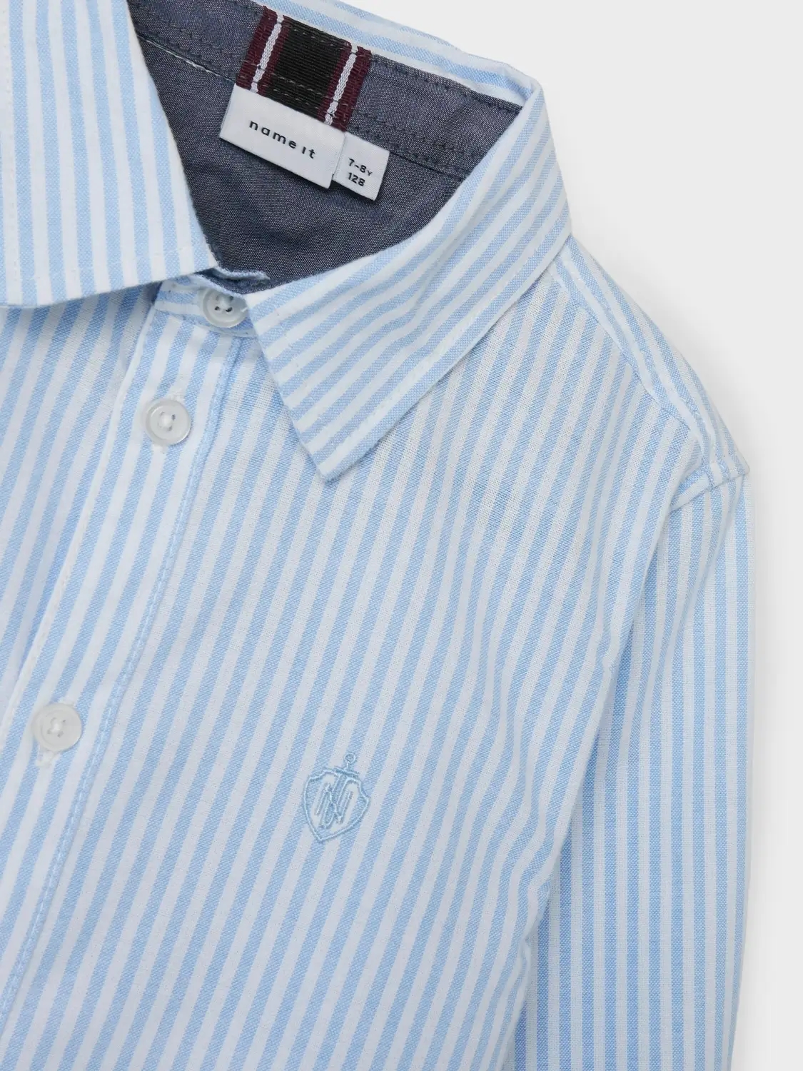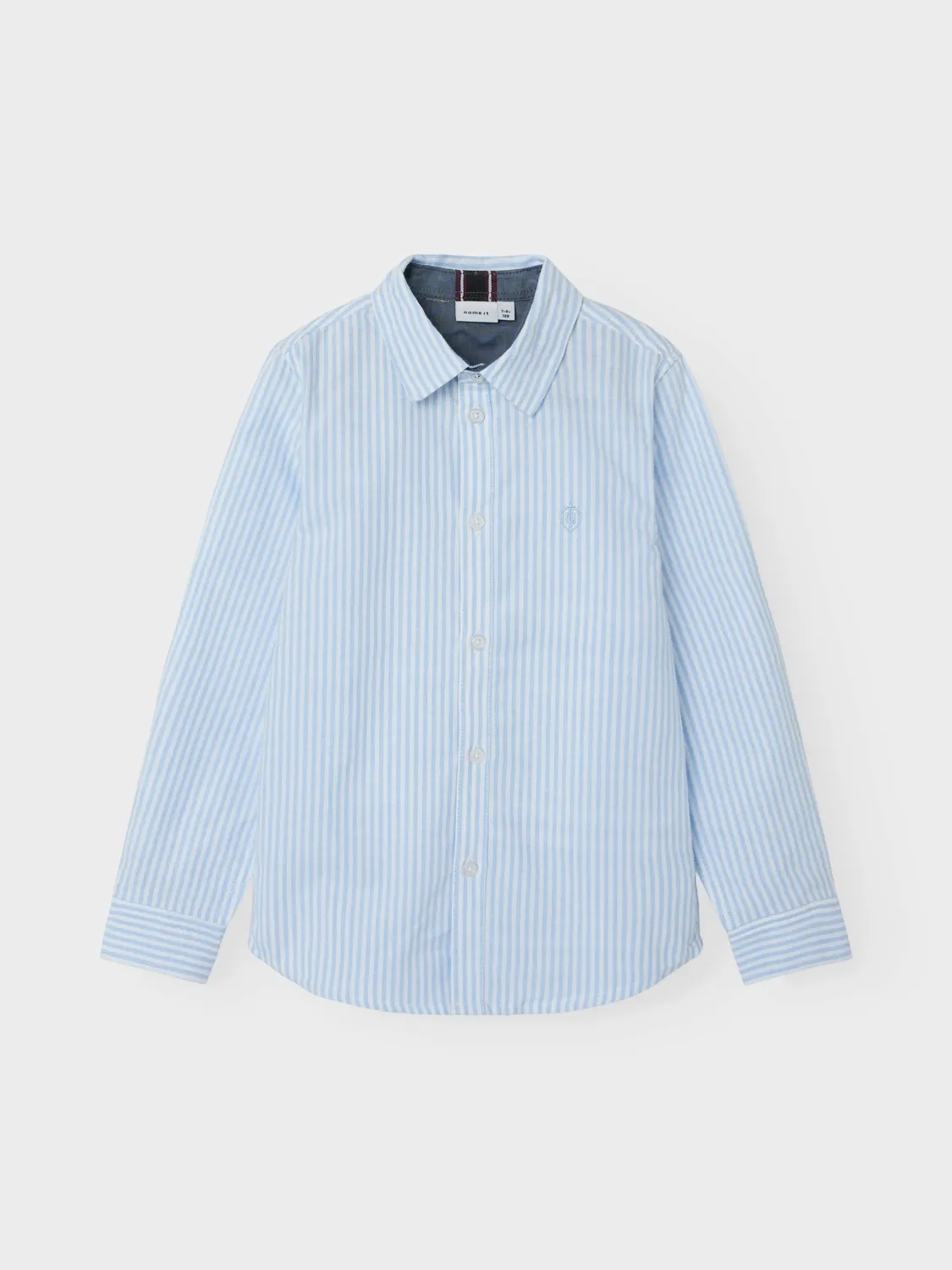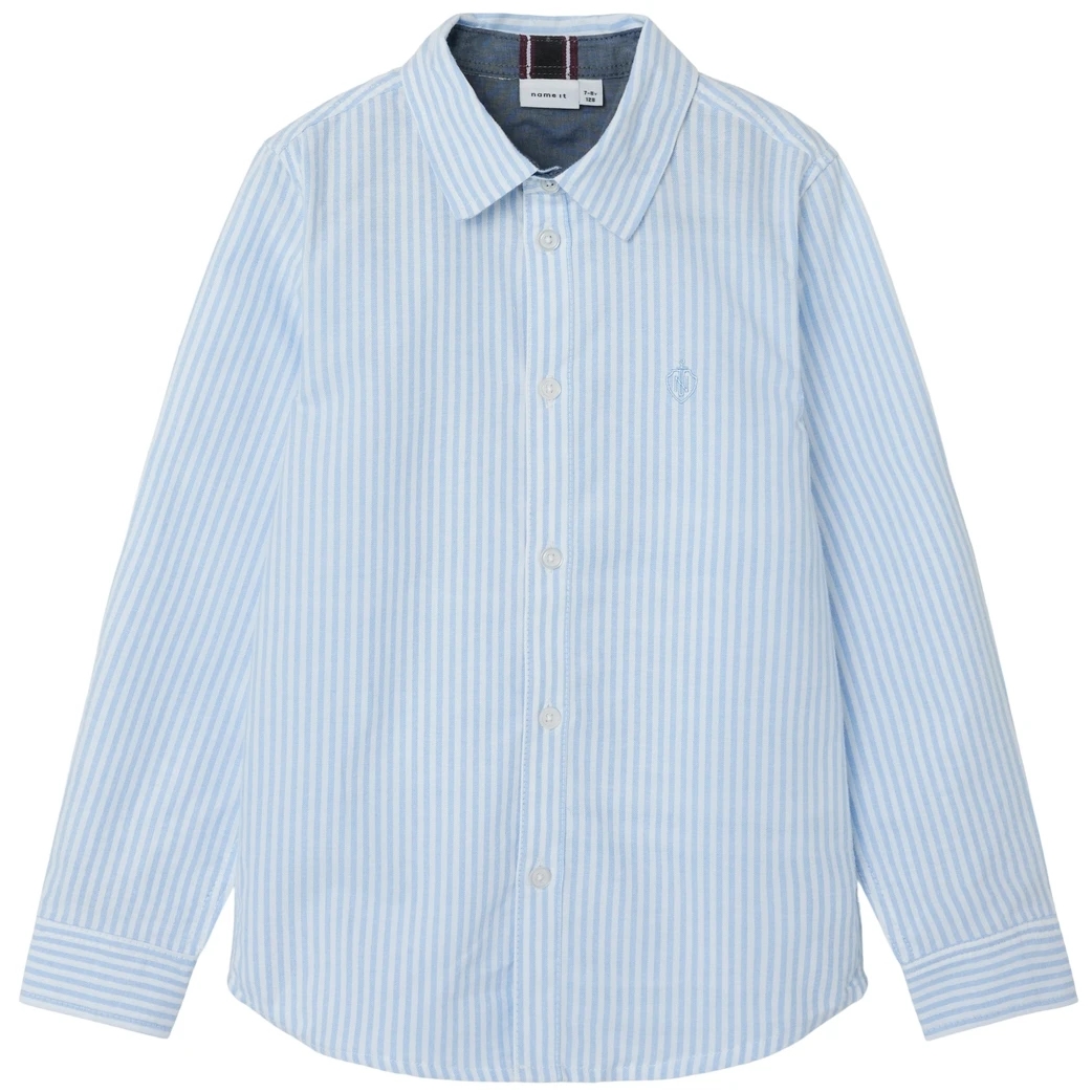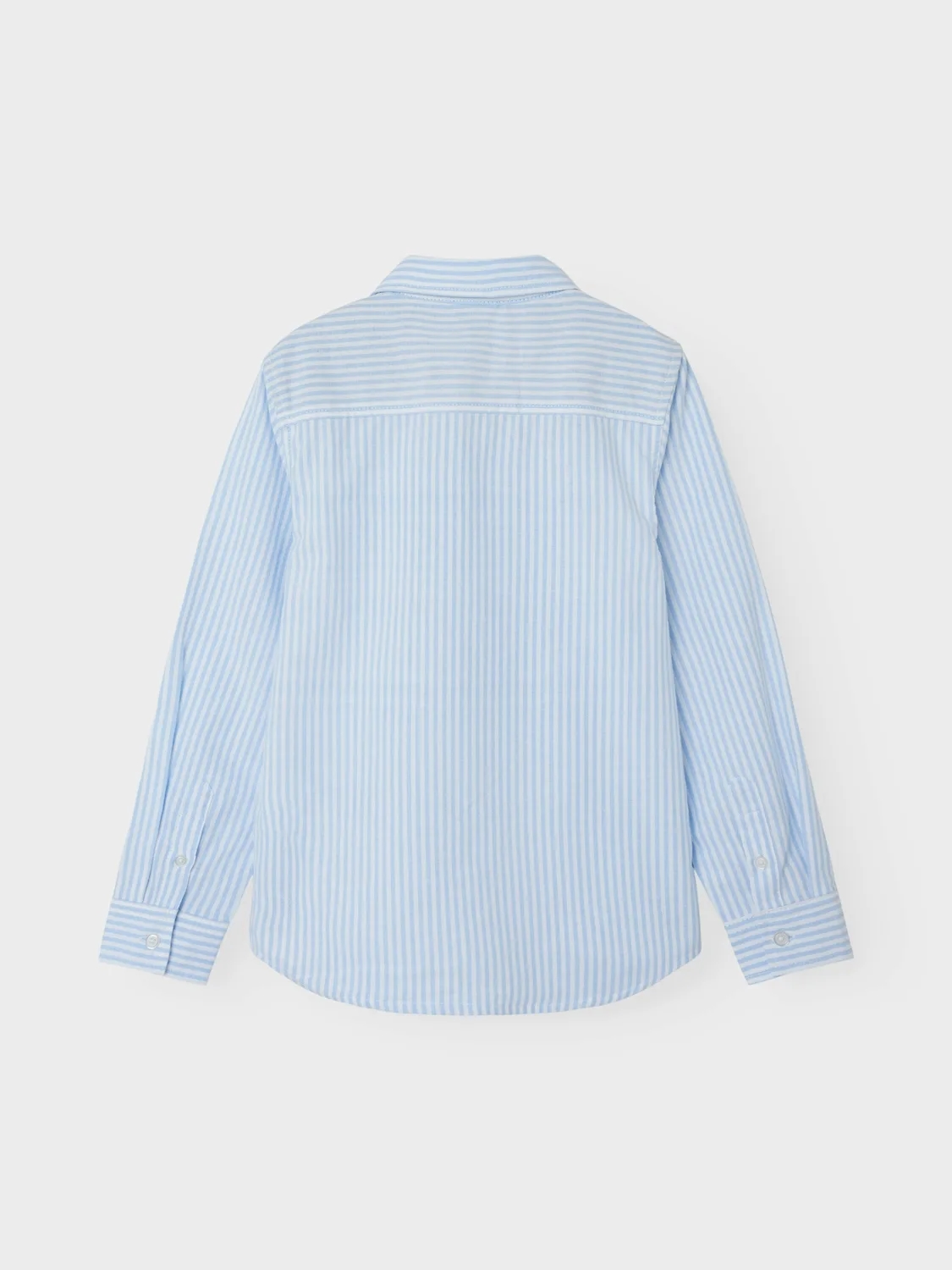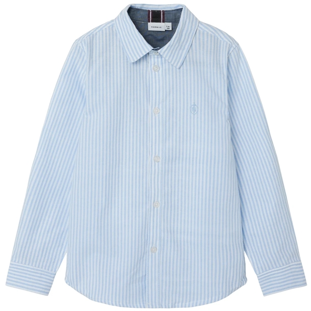 Name It skjorten er i flot lyseblå med hvide striber og er lavet i et pænt og stilrent design.