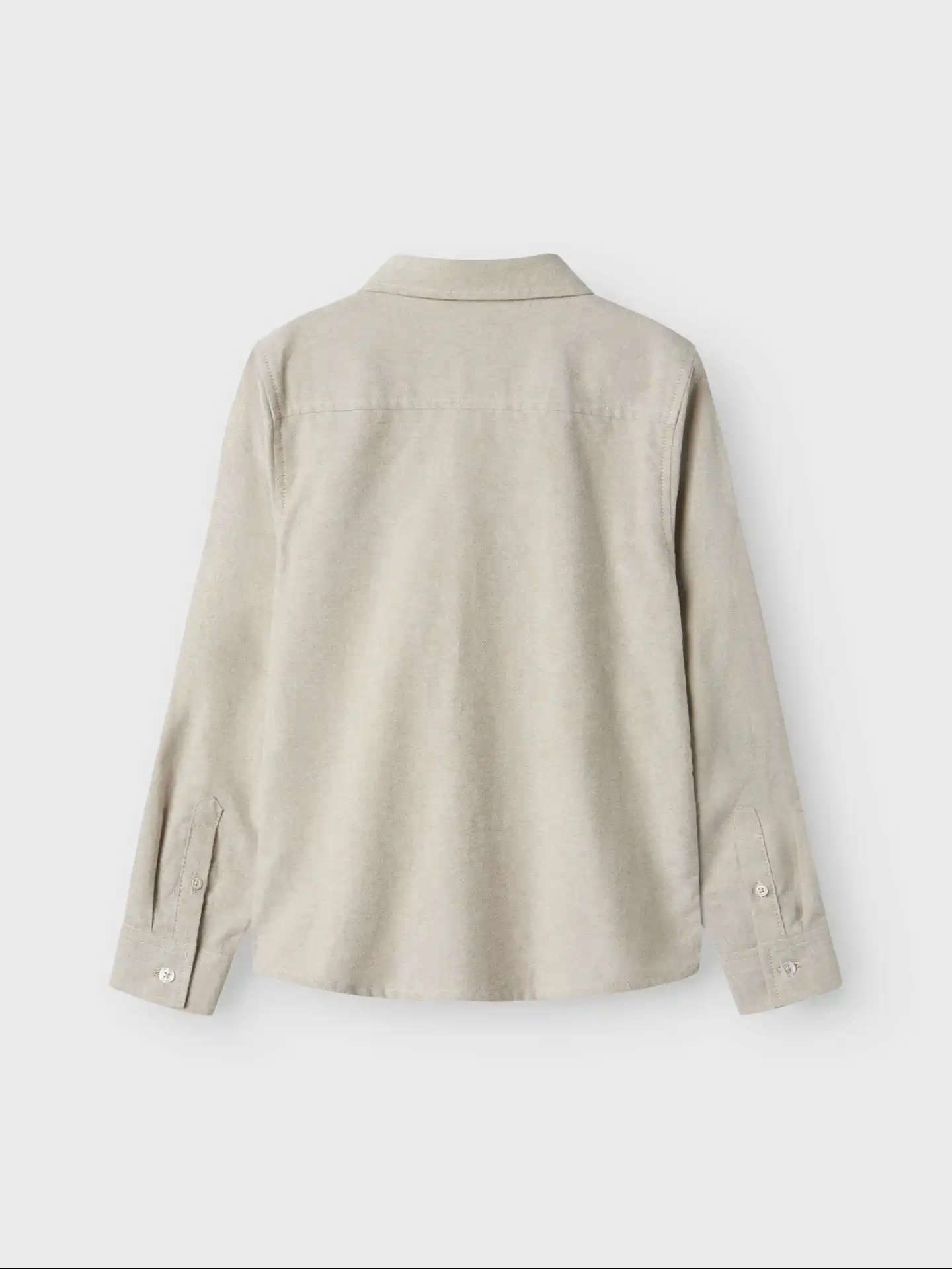 Name It skjorten er i en flot, ensfarvet beige nuance og er lavet i et pænt og stilrent design.