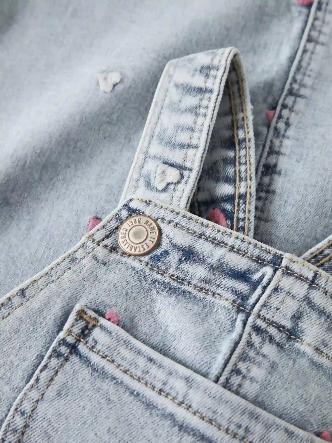 En super sød Name It spencer i flot lyseblå denim og broderede hjerter i hvid og rosa.