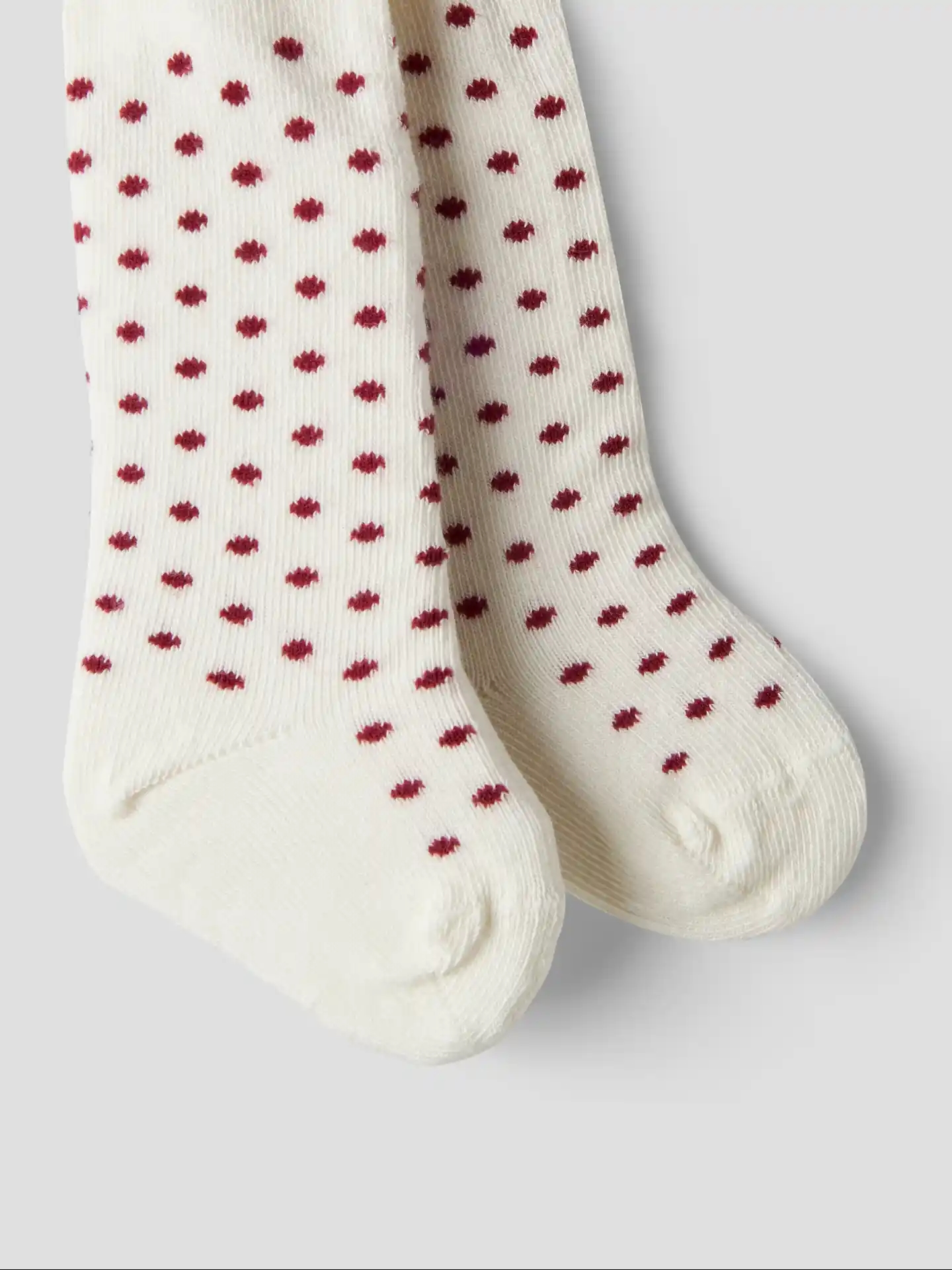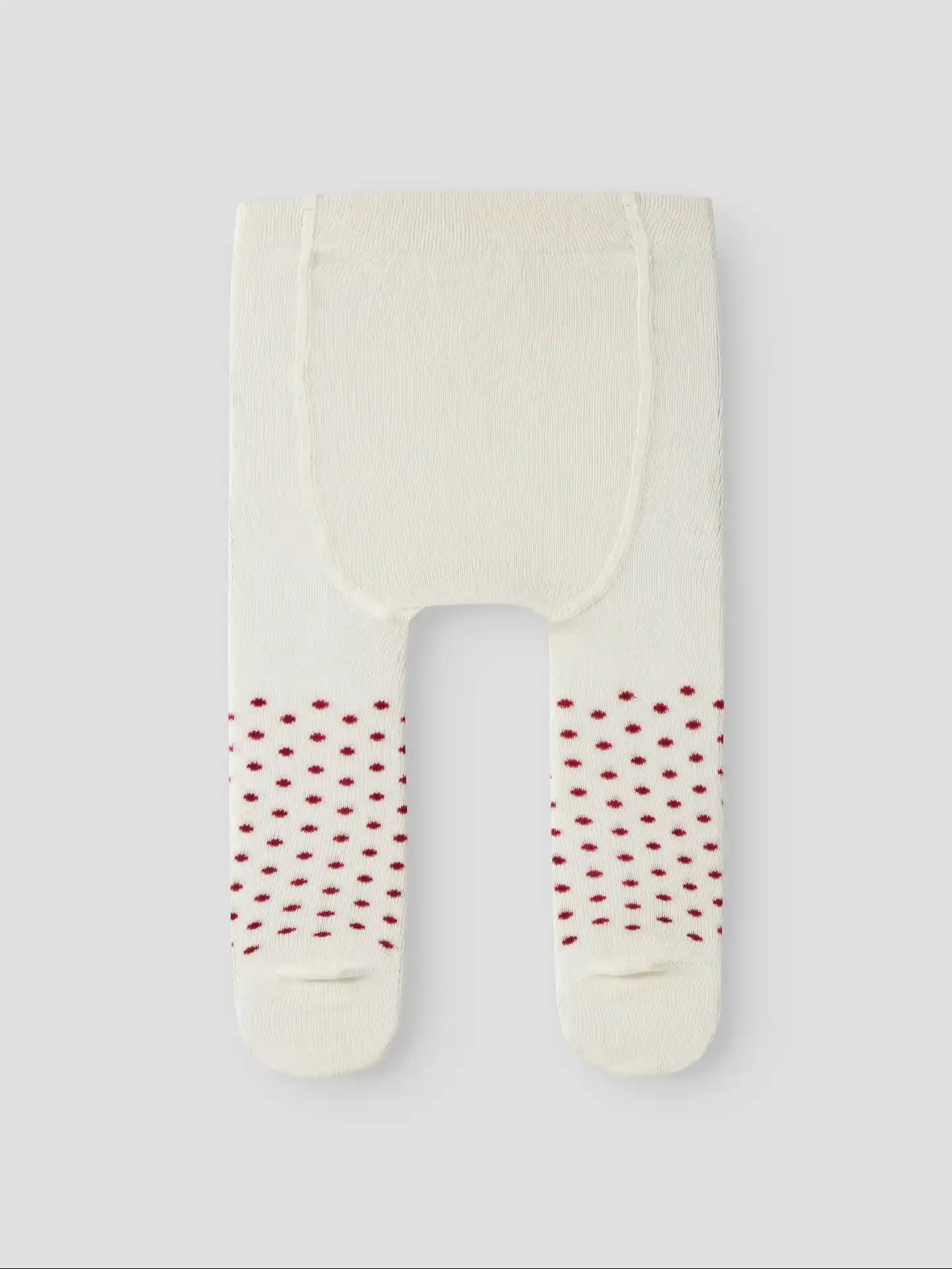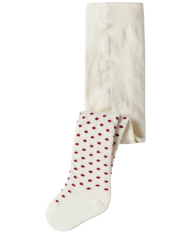 Name It strømpebukserne er cremehvide med røde prikker.
